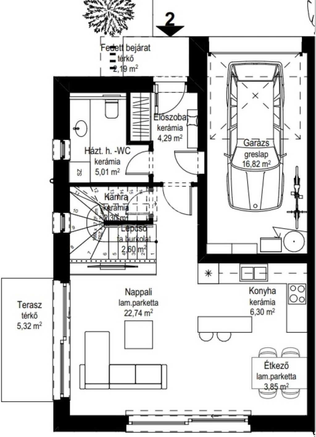 Nappali: 33 m²-es amerikai konyhás tér, közvetlen teraszkapcsolattal