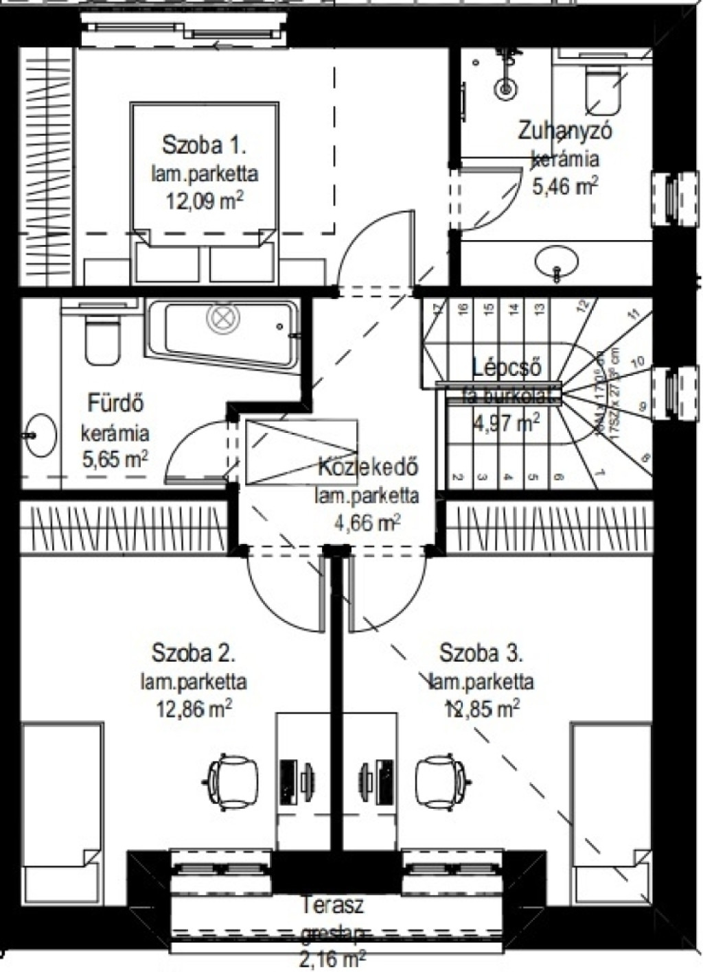 Fürdőszobák: összesen 3 (2 az emeleten, 1 a földszinten)