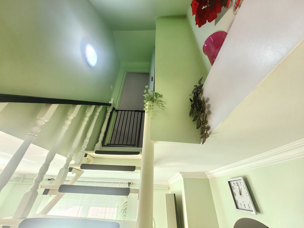 A lakás belső kétszintes kialakítású, praktikus elrendezéssel: