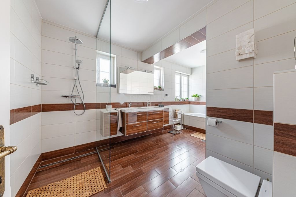 A ház saját, intim kerttel, garázzsal, több napfényes terasszal és lélegzetelállító panorámával rendelkezik, amely a villa több szintjéről is élvezhető. A jól átgondolt alaprajz harmonikusan választja el a közösségi tereket a privát élettértől.