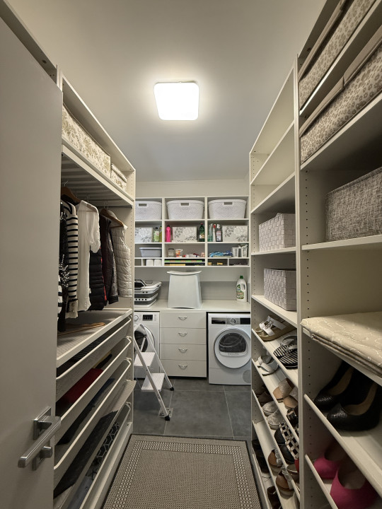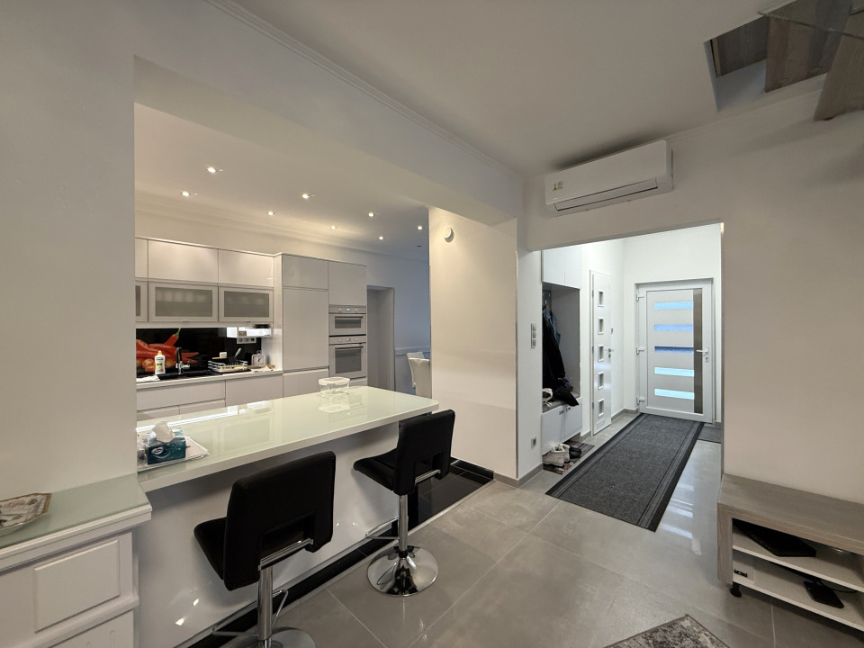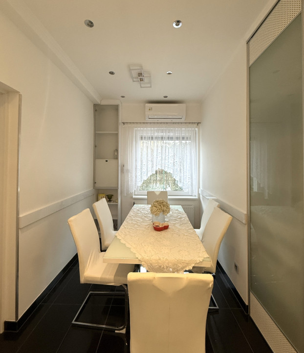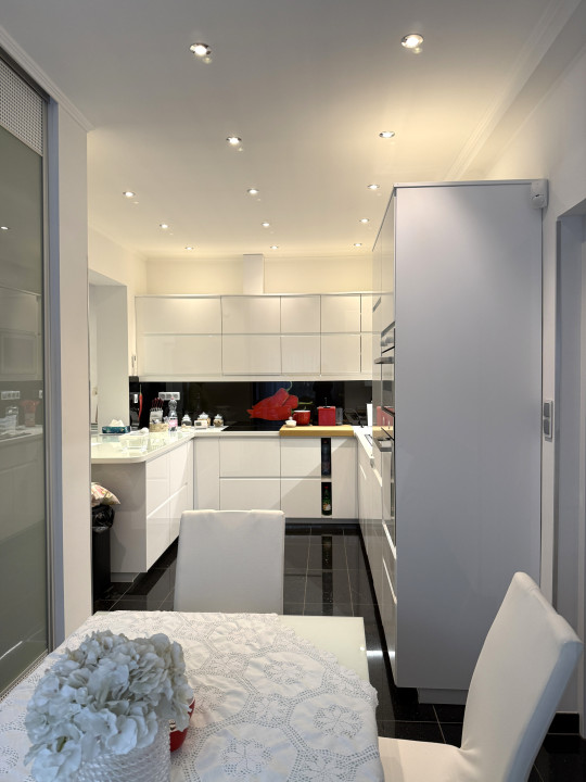 - an elegant, large kitchen area connected to the living space with a breakfast/dining bar, fitted with large built-in kitchen cabinetry and appliances; windowed dining area (17,4 sqm) with a walk-in wardrobe/closet,