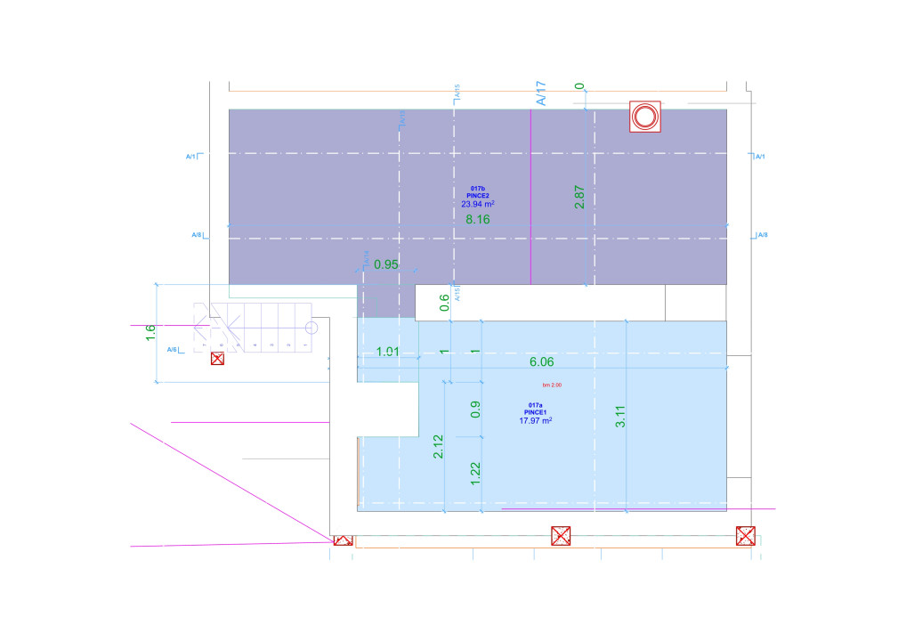 - from the central hallway: 1 room (8.2 sqm with floor area above 1.90 m) plus 2 half-rooms (approx. 6 sqm + 6 sqm with floor area above 1.90 m), with roof windows; the latter can be used as home offices/studies.
