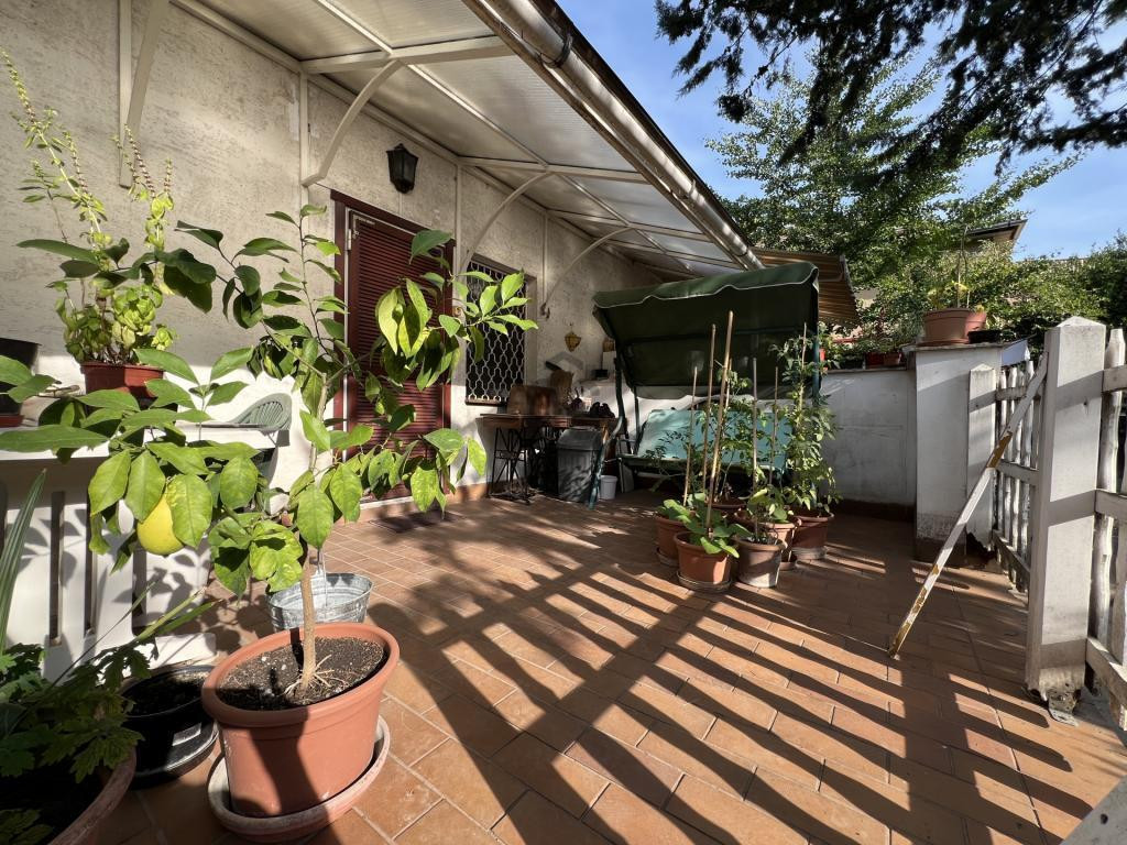 - A kertben tetővel fedett grillteraszt alakítottak ki.