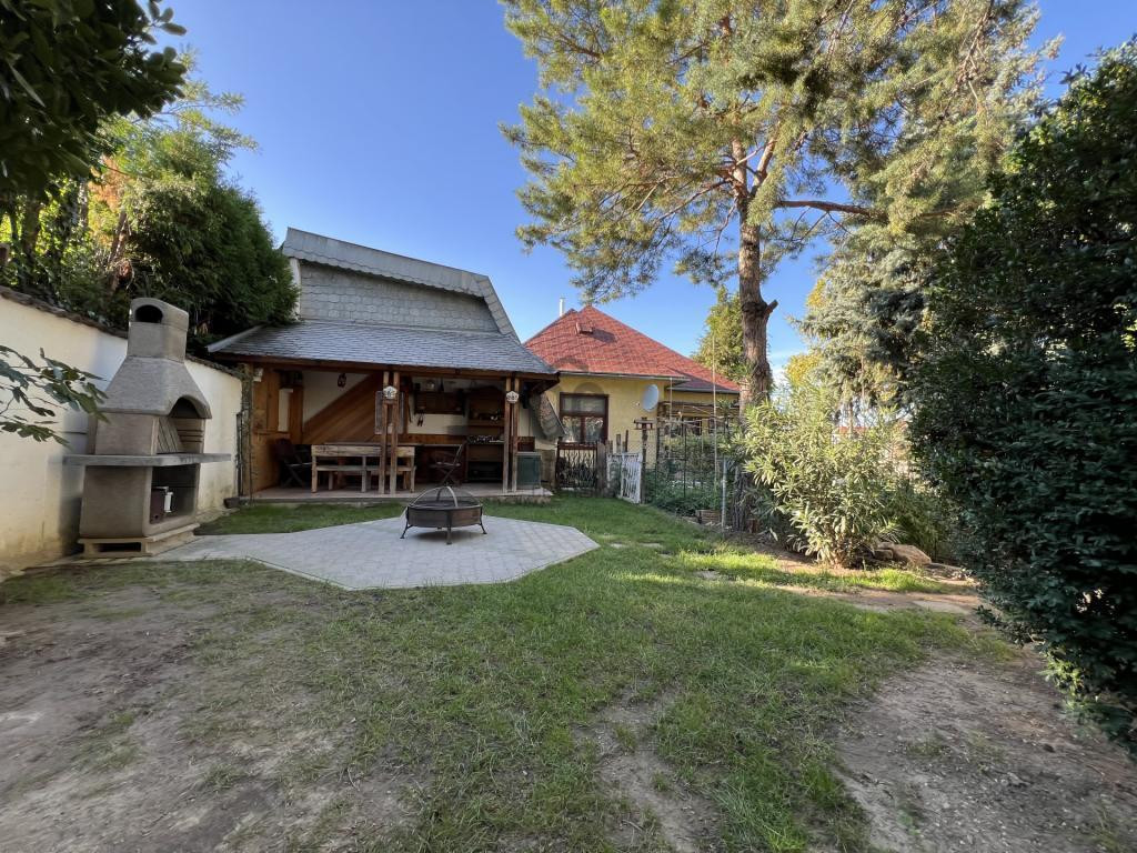 - A kertben tetővel fedett grillteraszt alakítottak ki.