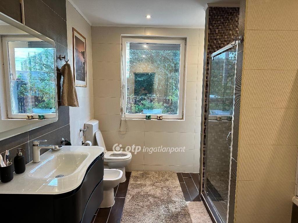 ***Kelenvölgyben! Kiemelt megbízás!*** 80 MFt-ig lakásbeszámítással is! Elsősorban Budapest és dél-budai régió. Budapest, XI. kerület, Kelenvölgyben eladó, tehermentes, amerikai konyhás nappalis+ 5 szobás, 2 szintes családi ház. Az eredeti épület 1987-ben épült, de 2015-ben a főfalak megtartásával építési engedéllyel, teljes átalakításon esett át. A belső lépcső is ki lett cserélve. A jelenlegi gépészet is akkor került kialakításra. A padlófűtés és a radiátorok Ariston cirkóról működnek, a melegvizet a cirkó melegíti fel, de egy Ariston tároló tartályból kerül a vízcsapokba, így nem okoz gondot, ha egyszerre több helyen is megnyitják a melegvíz csapot. 3 fürdőszoba található a házban, 1 kádas és zuhanykabinos a földszinten, és 2 zuhanyzós az emeleten. A földszinten ezen kívül még található egy vendég mosdó is WC-vel. Minden fürdőszobában van WC is. A földszinten egy 30 nm-es fedett és egy 12 nm-es fedetlen terasz található. Az emeleten szintén van egy 6 nm-es loggia és egy 2 nm-es kis terasz. A ház mellett 2 autó részére fedett gépkocsibeálló került kialakításra, elektromos autó számára kiépített töltőállomás van. (3 fázis). A kertben egy nagyobb méretű melléképület is található. Az amerikai konyhás nappaliban, valamint a vizes helyiségekben járólap a szobákban valódi faburkolat van. A földszinten és az emeleten is van klíma, a földszinti helységeken és a déli fekvésű emeleti szobákon redőny van. A házon 15 cm-es dryvit szigetelés van, ezért a rezsi nagyon kedvező. A ház riasztóval szerelt. Az új kerítés tavaly készült el. A nappaliból és az innen nyíló fedett teraszról szép kilátás nyílik a hangulatos kertre, melyben sok gyümölcsfa (cseresznye, füge, alma, termő gránátalma és örökzöldek (leylandi cédrus, leanderek), valamint rózsák találhatók. A kertben egy kerti grillező is helyet kapott.