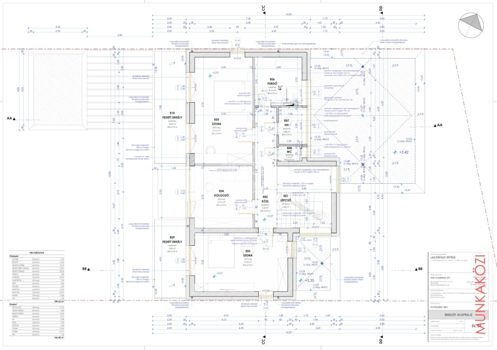 Az emeleten 2 gyerekszoba, dolgozó, + fürdőszoba kerül kialakításra.