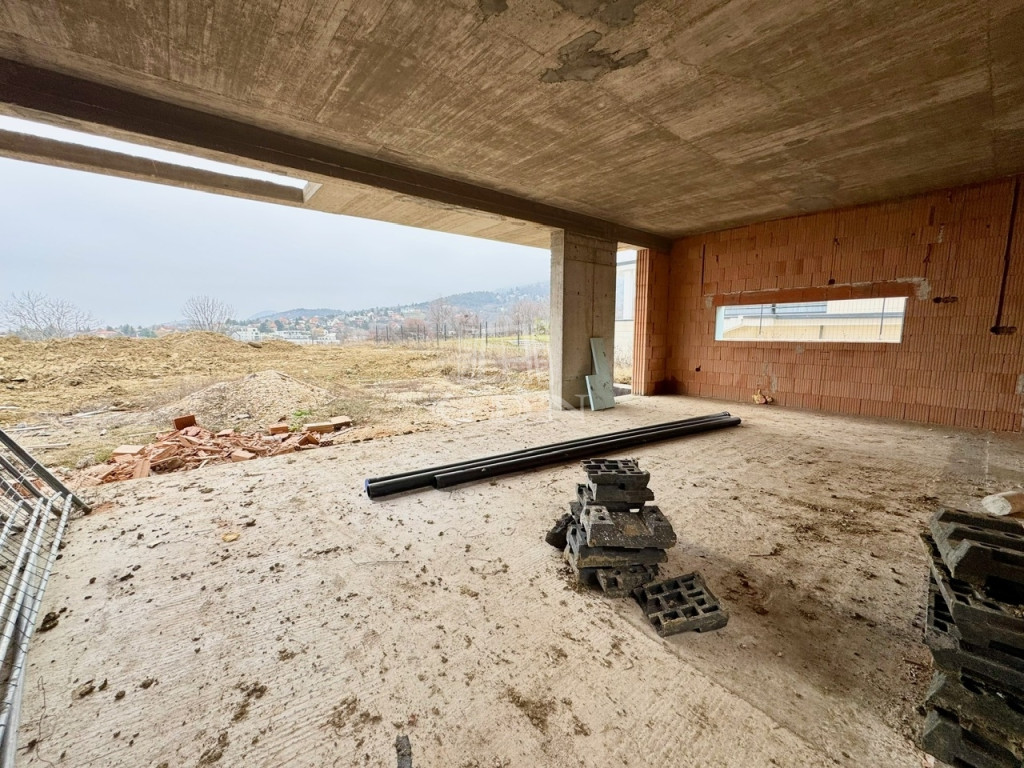 A gyönyörű panorámájú, szerkezetkész épület, napfényes D-K-i tájolású, 2 szintes, lakóterülete 266 nm, nappali + 4 hálószobás, (a szobák teraszkapcsolattal rendelkeznek). duplakomfortos, mely egy 1045 nm-es sík telken helyezkedik el. Kilátás nyílik itt, Budaörsre, Frankhegyre, és Budapestre is. A tervezői koncepció része volt, hogy a környező tájra néző panoráma szerves része legyen az enteriőrnek, így a ház szinte valamennyi helyisége napfényes, panorámás" kilátó" lett.