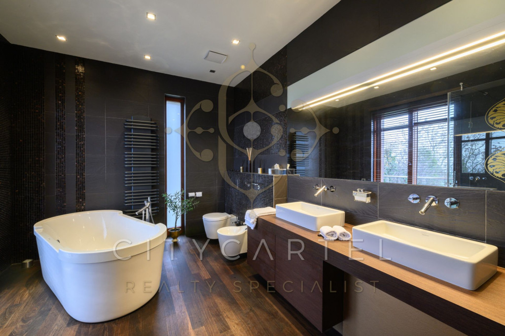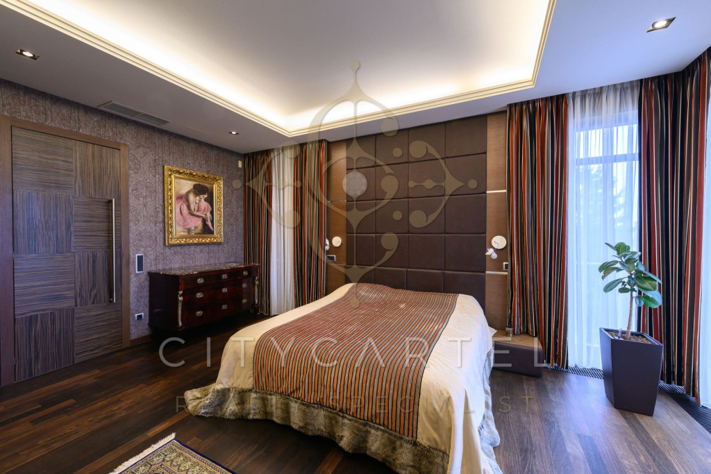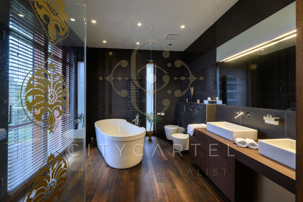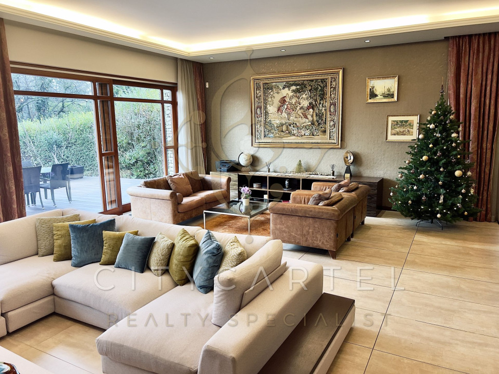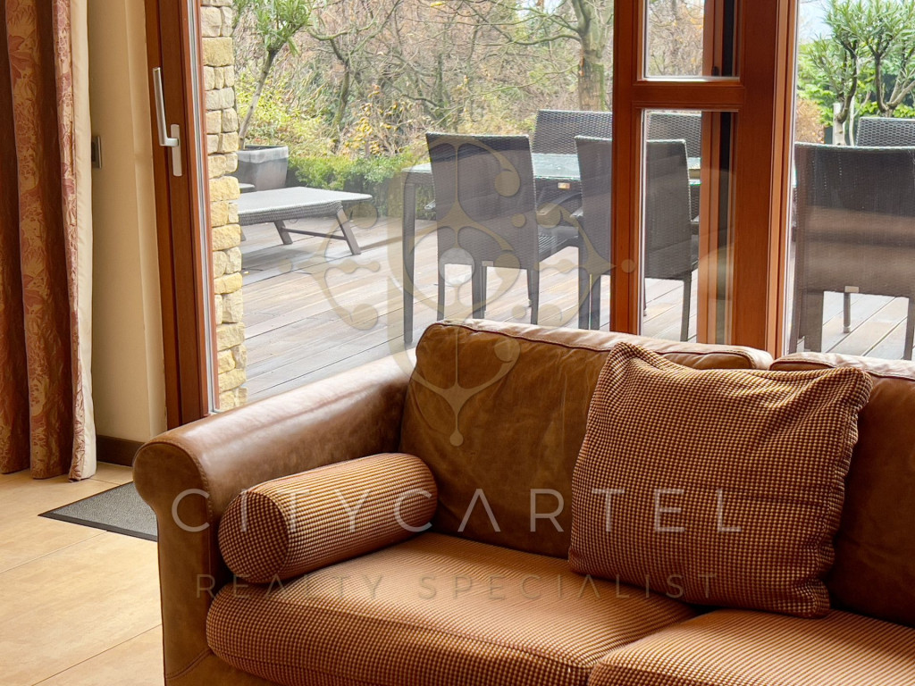 A tágas belső terek, a hatalmas üvegfelületek, a modern gépészet és a letisztult elegancia együttesen egy ritkán elérhető, magas presztízsű otthont alkotnak. A nappaliból és a teraszról zöldre néző, nyugalmat adó panoráma tárul elénk.