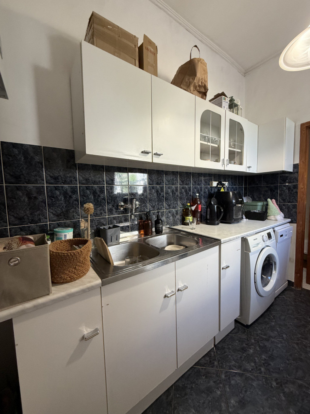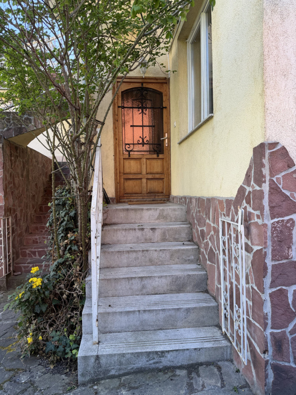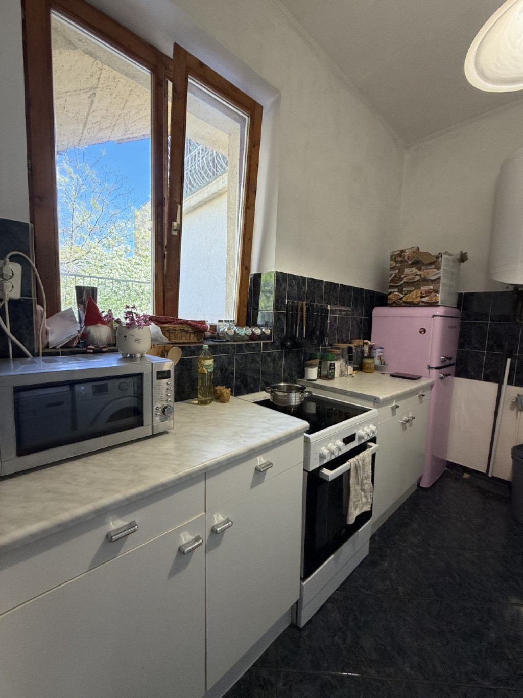 A ház az 1922-ben épült, többször felújították. A lakásba lépcsőn jutunk fel, az előszobával szemben helyezkedik el a nagy ablakos konyha konyhabútorral, villanytűzhellyel, mosogatógéppel felszerelt, a mosógép is itt kapott helyet. A nappali és az innen nyíló szoba nyugati fekvésű, világos, nem látni be az utcáról. A kisebbik szoba a bejárat mellett helyezkedik el. A fürdőszoba mosdóval, káddal felszerelt, a toalettel egy helységben kapott helyet.