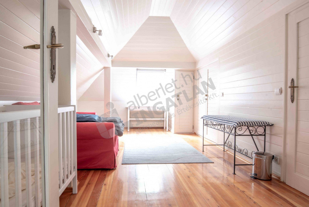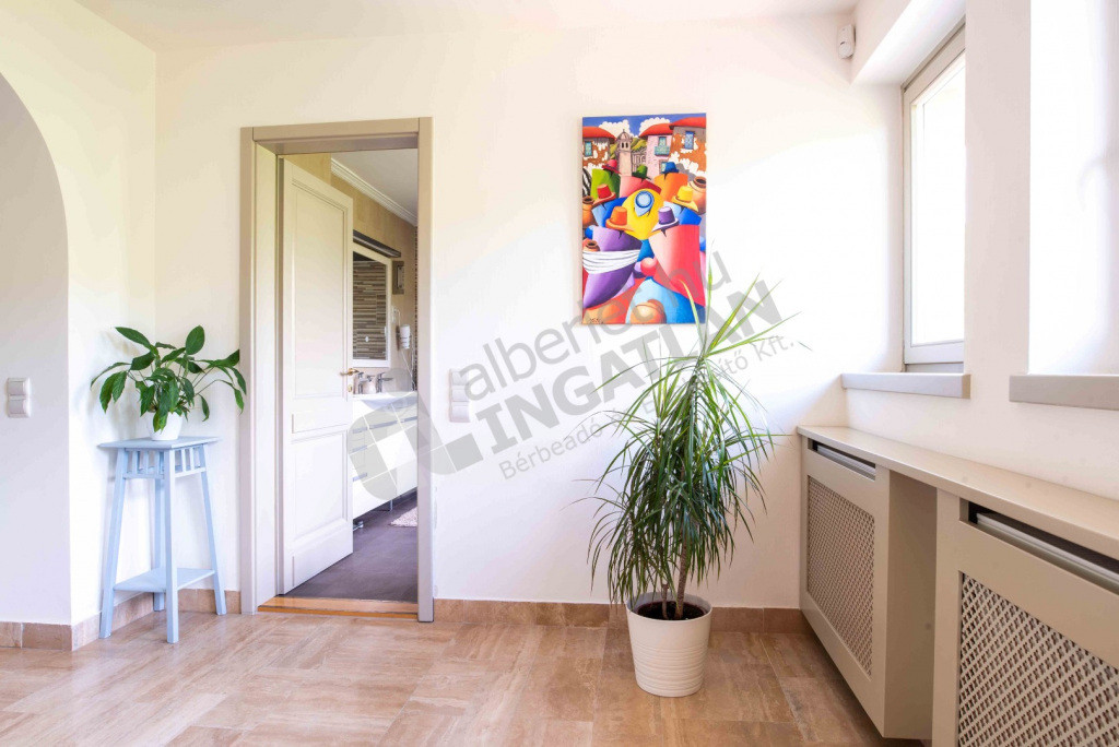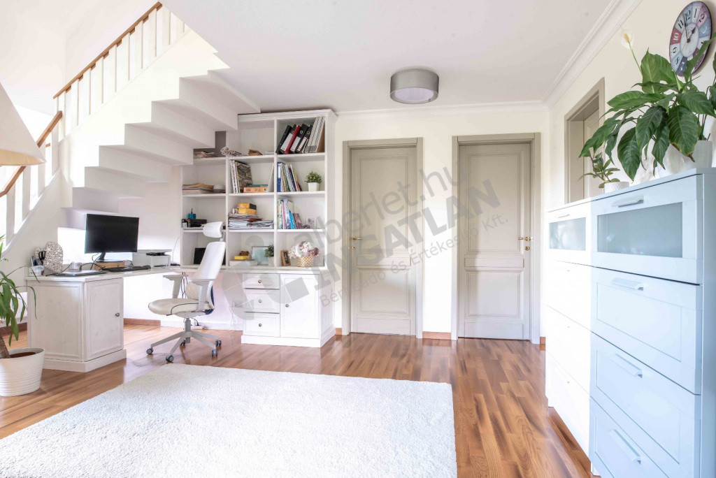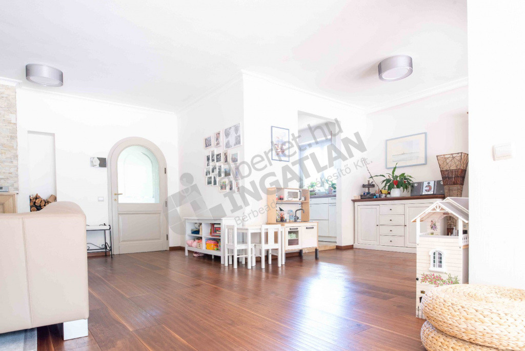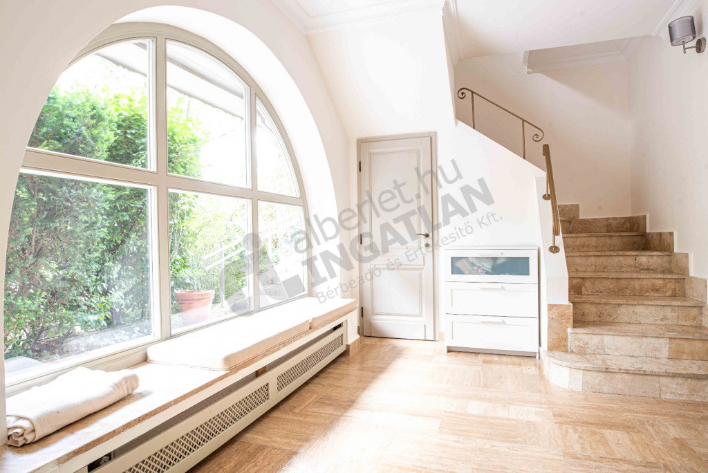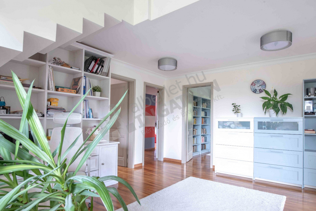In a quiet, forested area of the 12th district, on a carefully maintained plot of 1482 m², a 406 m², completely renovated detached house is for sale. The property is located in a traffic-free cul-de-sac, so both the garden and the house provide complete intimacy.