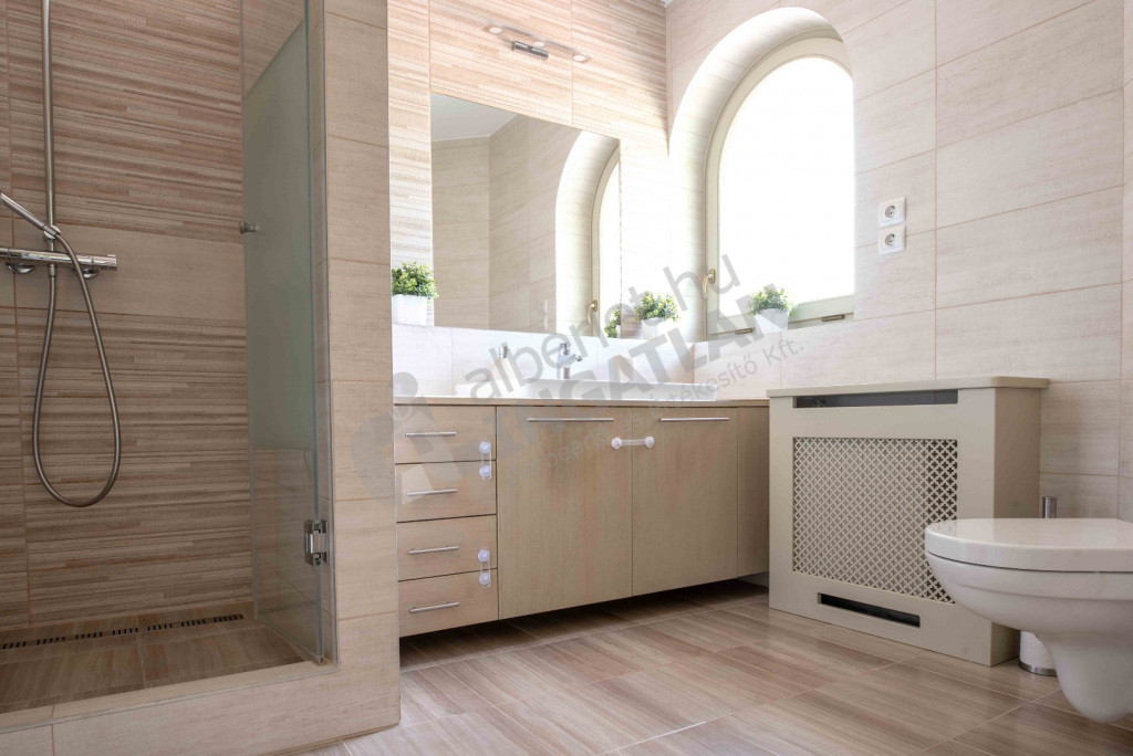 A belső tereket elegáns sütkői márványburkolatok teszik igényessé. A házhoz külön garázs és fedett autóbeálló is tartozik.