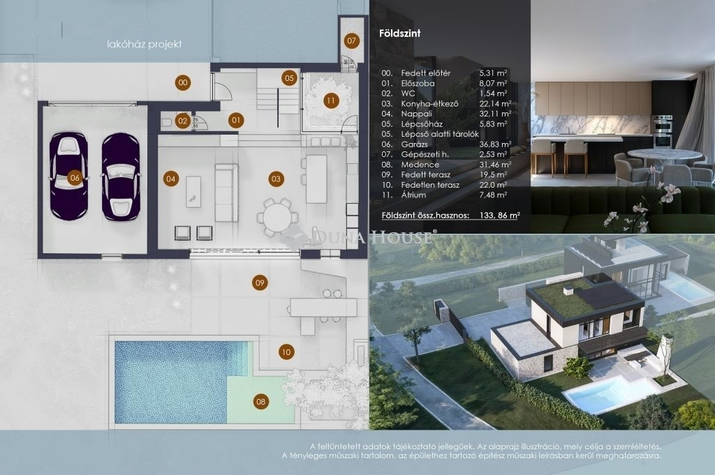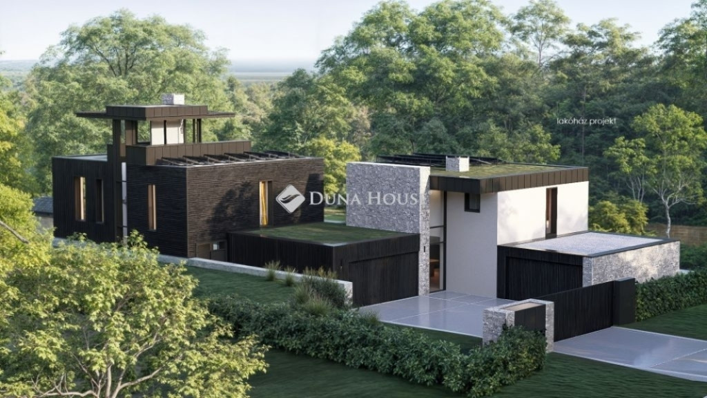 Eladó egy új építésű, belső kétszintes, 189 m²-es luxusvilla-projekt kültéri medencével, 1700 m²-es déli fekvésű panorámás telken, érintetlen erdő ölelésében.