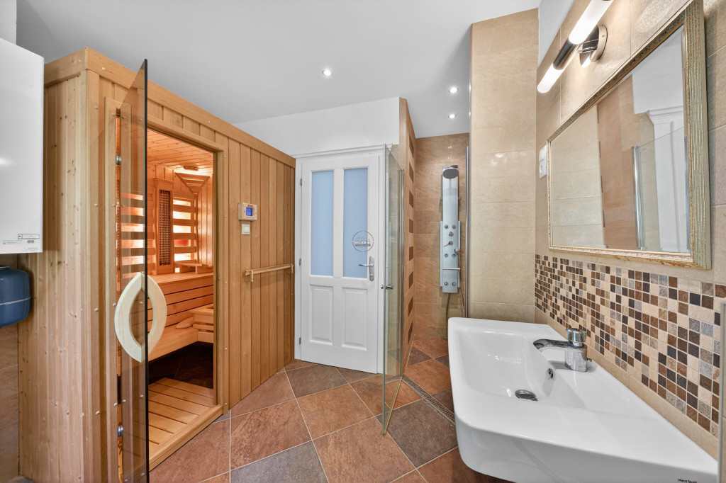 A gondozott, dísznövényekkel beültetett kertet automata öntözőrendszer ápolja. A téli hónapokban a nappali hangulatát fatüzeléses kandalló teszi még meghittebbé, míg a finn- és infraszauna a teljes kikapcsolódás élményét kínálja.