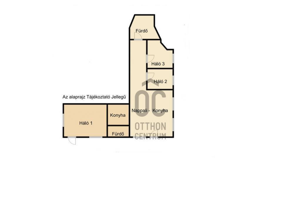 A házzal szemben állva jobb oldali részen található egy nagy nappali+konyha, kèt szoba és fürdőszoba, a bal oldalon pedig egy nagy szoba, konyha és egy kis fürdőszoba.