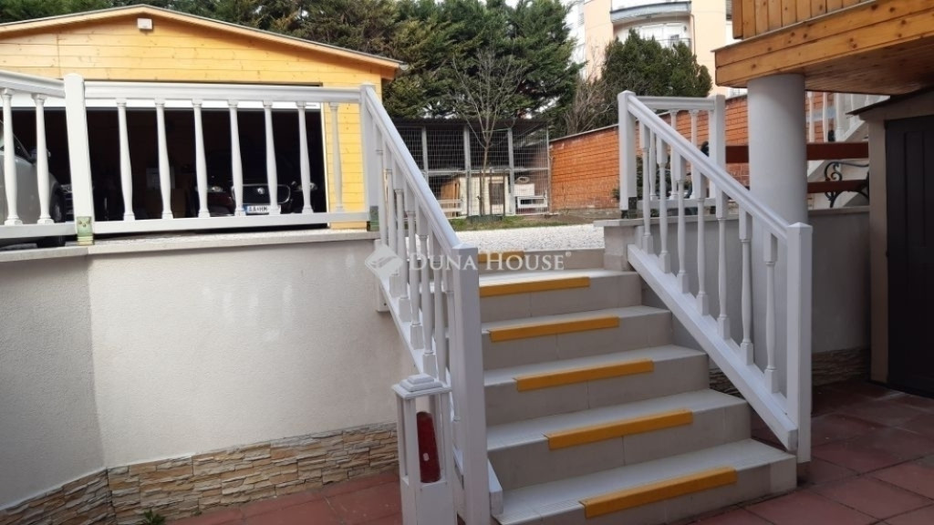 Klíma, riasztórendszer, kamerarendszer is kiépítésre került. Az udvarra elektromos kapun keresztül lehet bejutni, ahol egy 2 autó számára kialakított garázs lett felépítve, de több autó is elfér az udvaron.