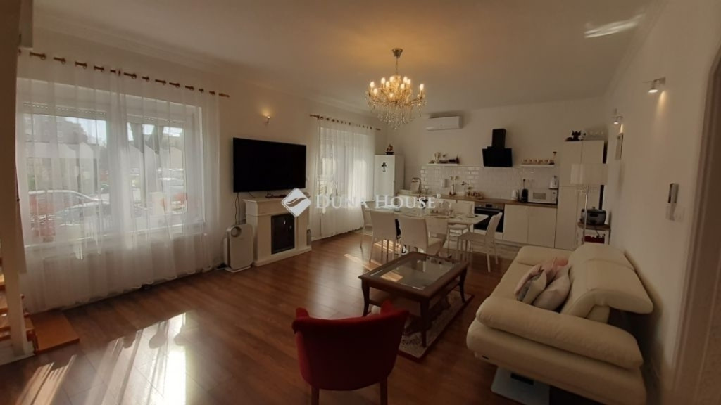 Az ingatlan minőségi felújításon esett át, két külön bejáratú lakást alakítottak ki benne. A félszuterén szinten van egy 2 szobás világos lakás. A földszinti lakás belső 2 szintes, nagy nappali + amerikai konyhával,4 hálószobával, 2 fürdőszobával rendelkezik. Fűtése padlófűtés melyet villanykazán biztosít.