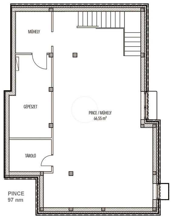 A FÖLDSZINT 98 nm, egyterű kialakítással, tárolóval, - igény esetén itt is kialakítható konyha, a kiállások megvannak,- mellékhelyiség, közlekedő, előszoba,