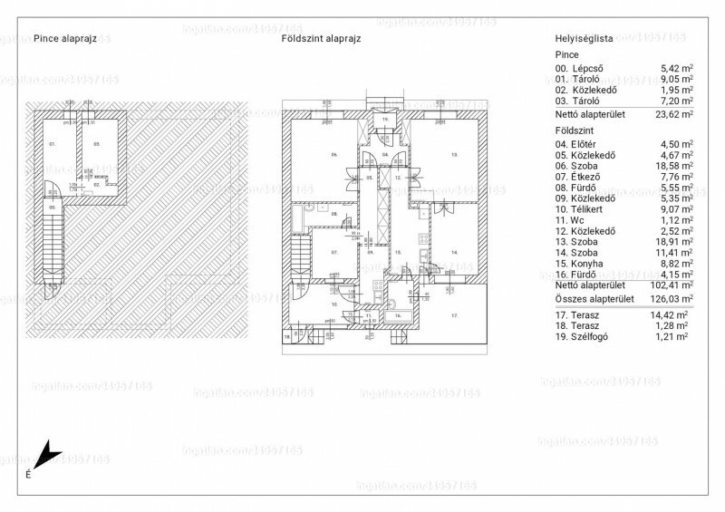 Mindkét lakrész saját teraszos, kertkapcsolatos.