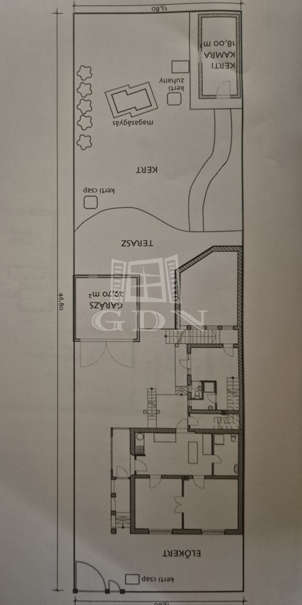 A földszinten lévő, 80 m2-es, két szobás lakás felújított állapotban, korszerűsített gépészettel rendelkezik.