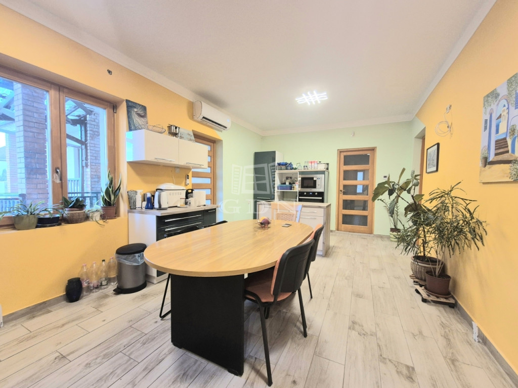 Az emeleti 130 m2-es lakás amerikai konyhával, 4 különnyíló hálószobával, kádas fürdőszobával, erkéllyel került kialakításra.