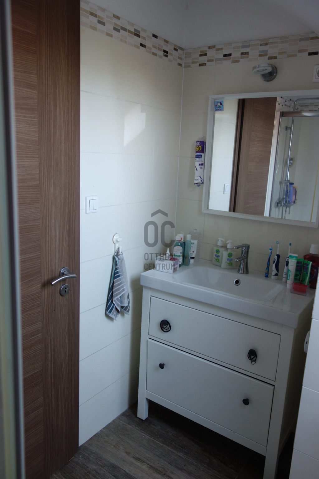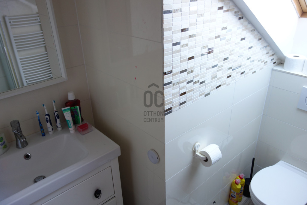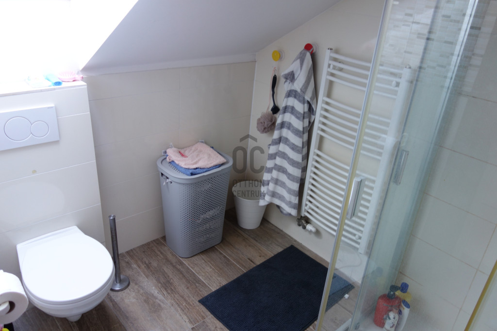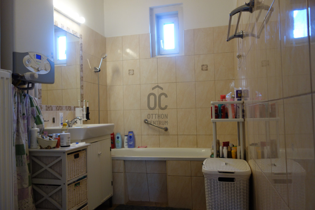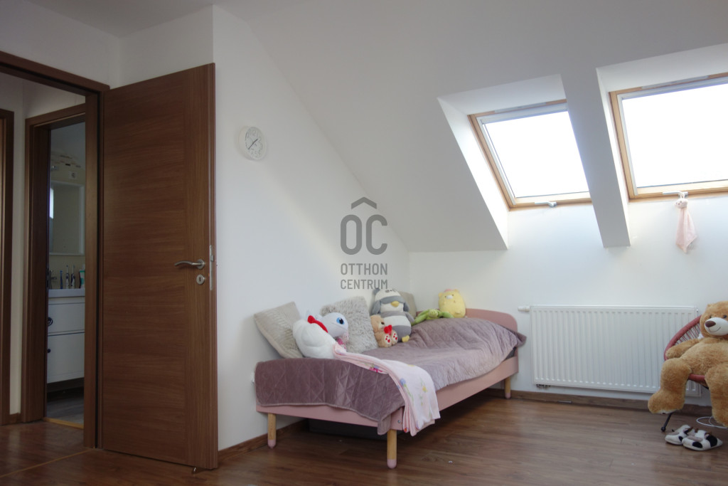 Az 50nm-s előkertet kiválóan tudjuk élvezni gyerekekkel is, hiszen itt egy csendes kertvárosi utca a kilátásunk. A ház mögött van egy kisebb kert is.