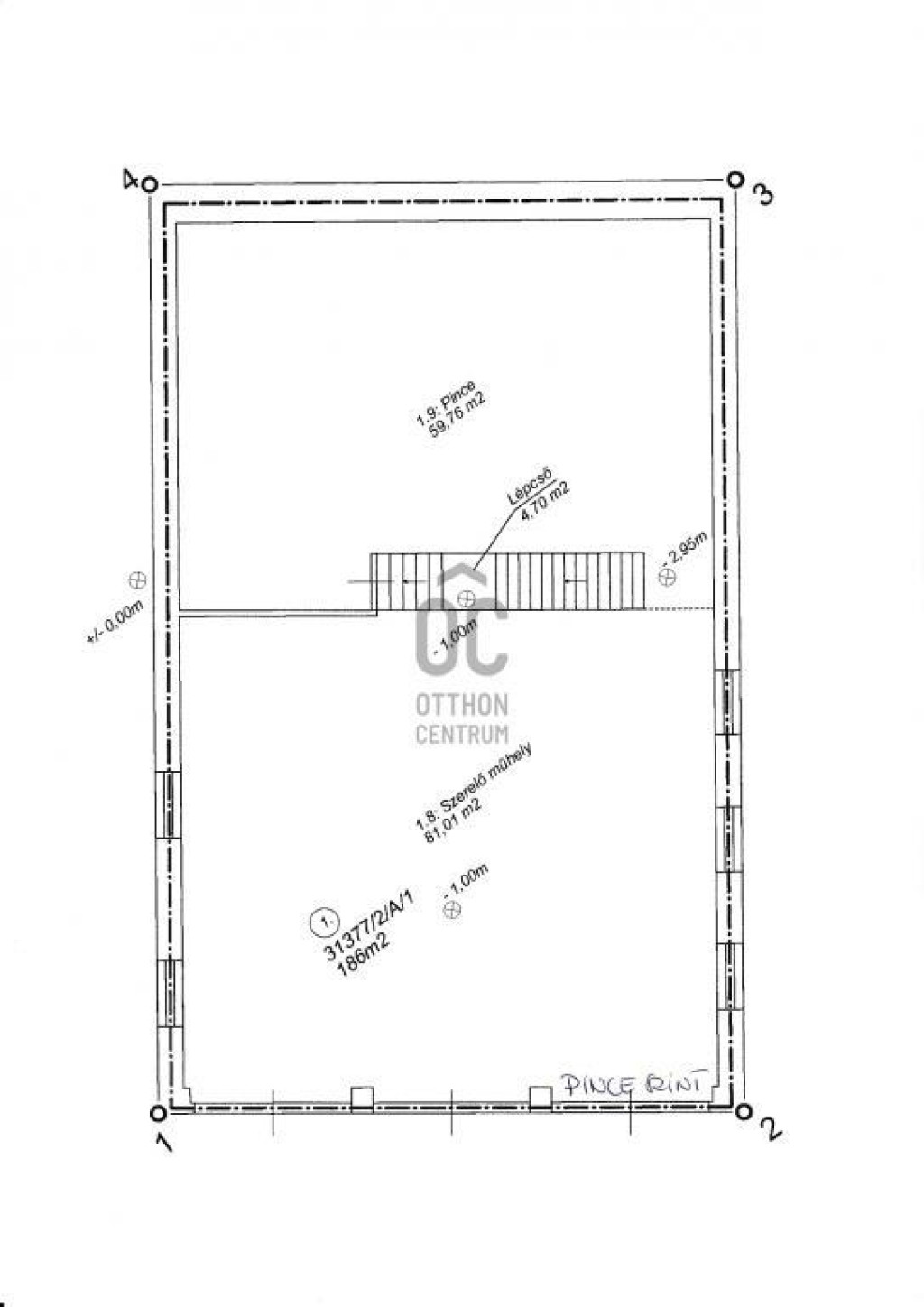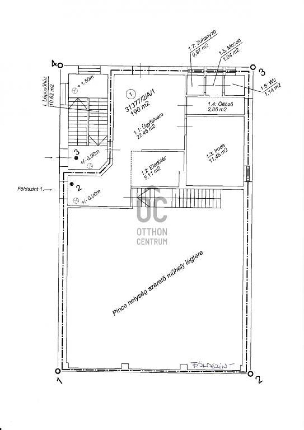 -földszint: 64,83nm - ez a pince szint kétemeletnyi belmagassága miatt lett kialakítva, hogy elférjenek a magas autók és a munkagépek is a szervízben