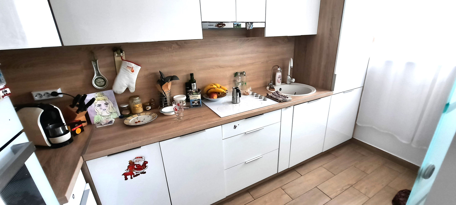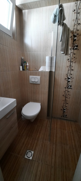 A konyha ízlésesen berendezett, gépesített, teljes berendezéssel a vételár részét képezi. A fürdőszoba szintén.