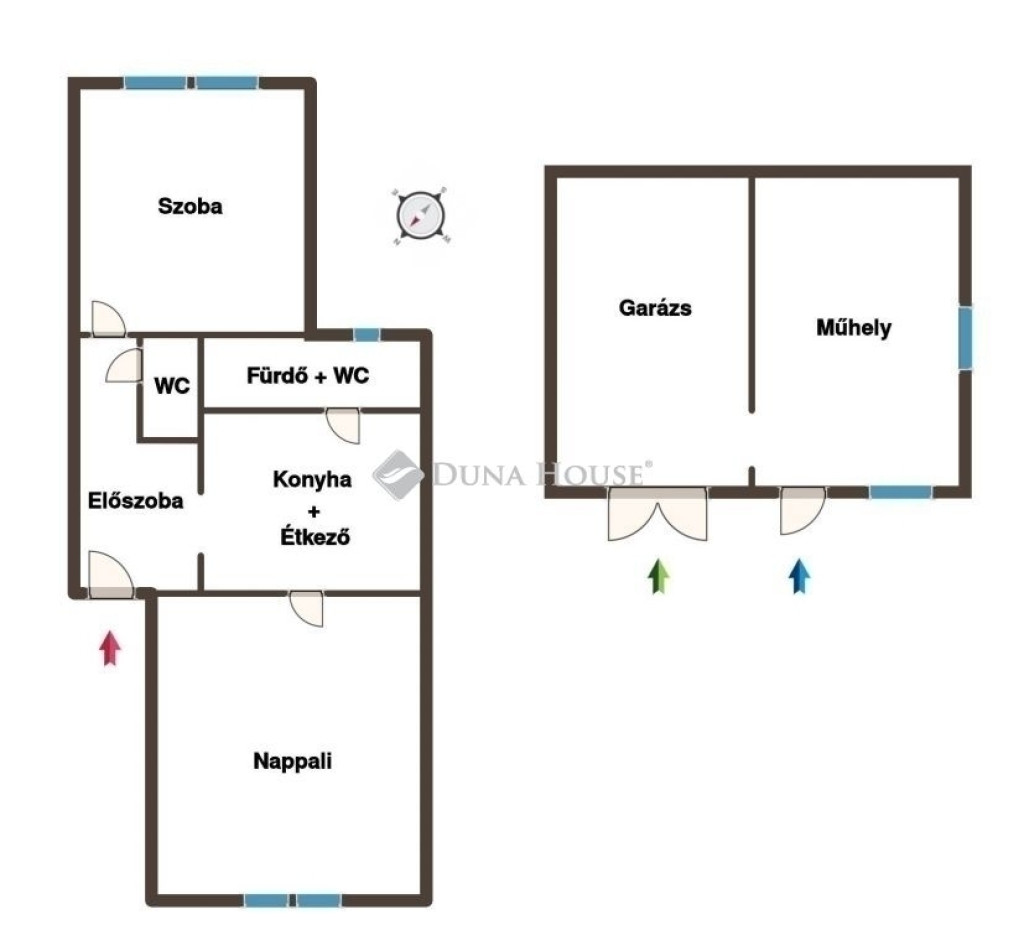 Az udvar végében található 17 m²-es garázs és a hozzá kapcsolódó 18 m²-es műhely, amelyek egy épületben kaptak helyet, így akár barkácsolásra, vállalkozásra, vagy extra tárolásra is tökéletesek!