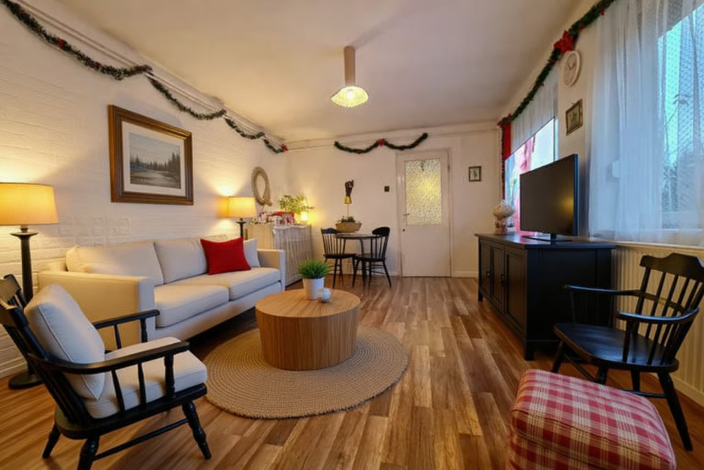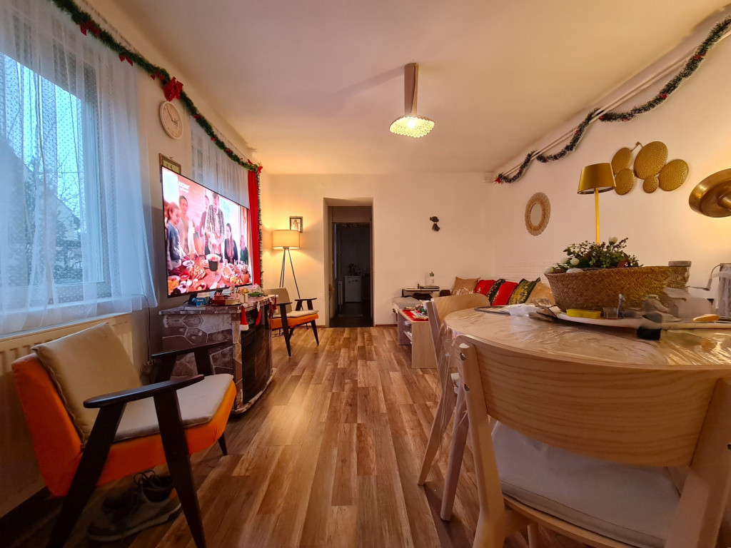 • Kiegészítő fűtés: fatüzelésű cserépkályha a kétszobás lakrészben