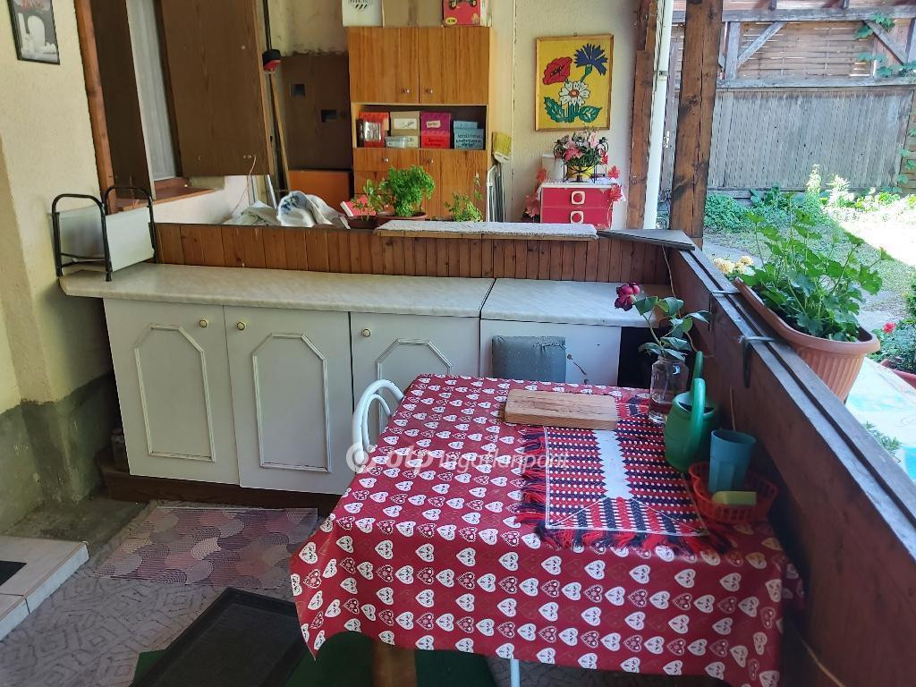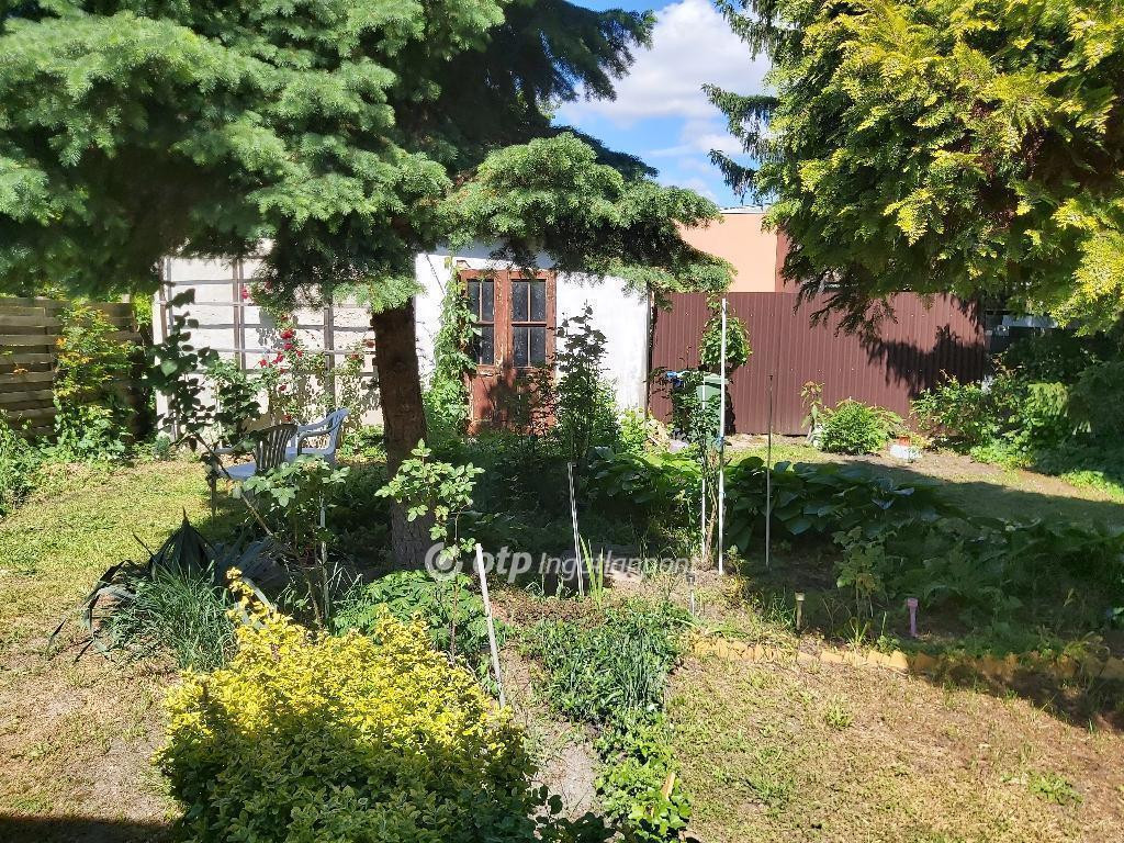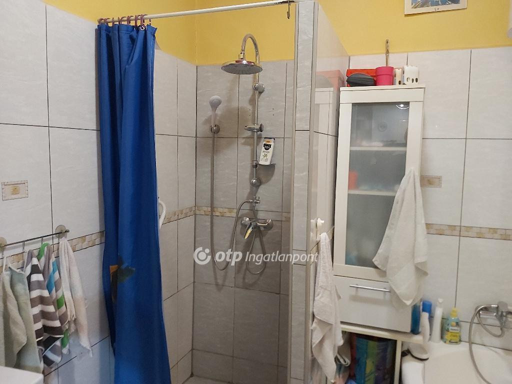Az épületet a család, szülők építették, az 1960-as években, saját maguknak, úgy, hogy már építéskor is megosztották a családi házat, a két testvér részére. Egy helyrajzi számon van, 574 m2 nagyságú telken, az eladásra kínált épületrész nettó 67,37 m2, két szoba, két fürdőszoba WC-vel, konyha, étkező, kamra és egy fedett terasz, amely 14 m2 nagyságú. Természetesen az eladó részhez tartozik a telek fele is, 287 m2, valamikor egy nagyon szép gondozott virágoskert, és zöldterület volt, majd az új tulajdonos úgy gondozza tovább, ahogy szeretnék. Bármit ki lehet alakítani ott, játszóteret a kisgyereknek, kiülős sütögetőt, vagy csak egy pihenő parkot. A terasszal szemben van egy táróló, ami szintén ehhez a házrészhez tartozik, nagyságából adódóan akár nyári konyhává is alakítható.