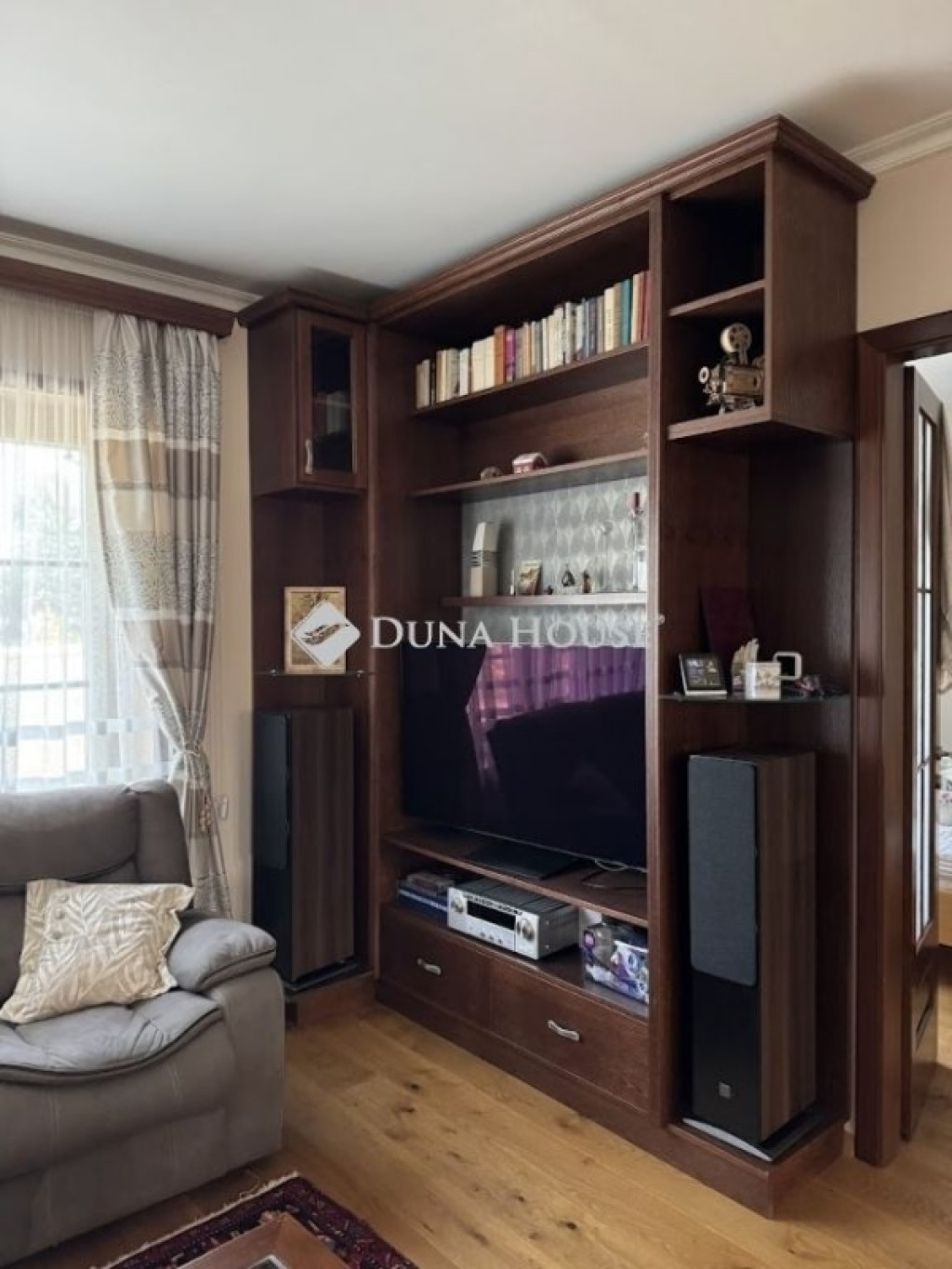 A szuterénban vízlágyító gépészet került telepítésre. A konyhabútor toldásmentes tölgyfából készült, beépített Siemens és Bosch gépekkel, borhűtővel. 2 hálószobában szintén tölgyfa frontos beépített szekrénysorok vannak, a nappaliban beépített bútor a tv-nek, hangrendszernek, az előszobában is fa frontos beépített bútor a kabátoknak, cipőknek. A kamrában polcrendszer került kialakításra.