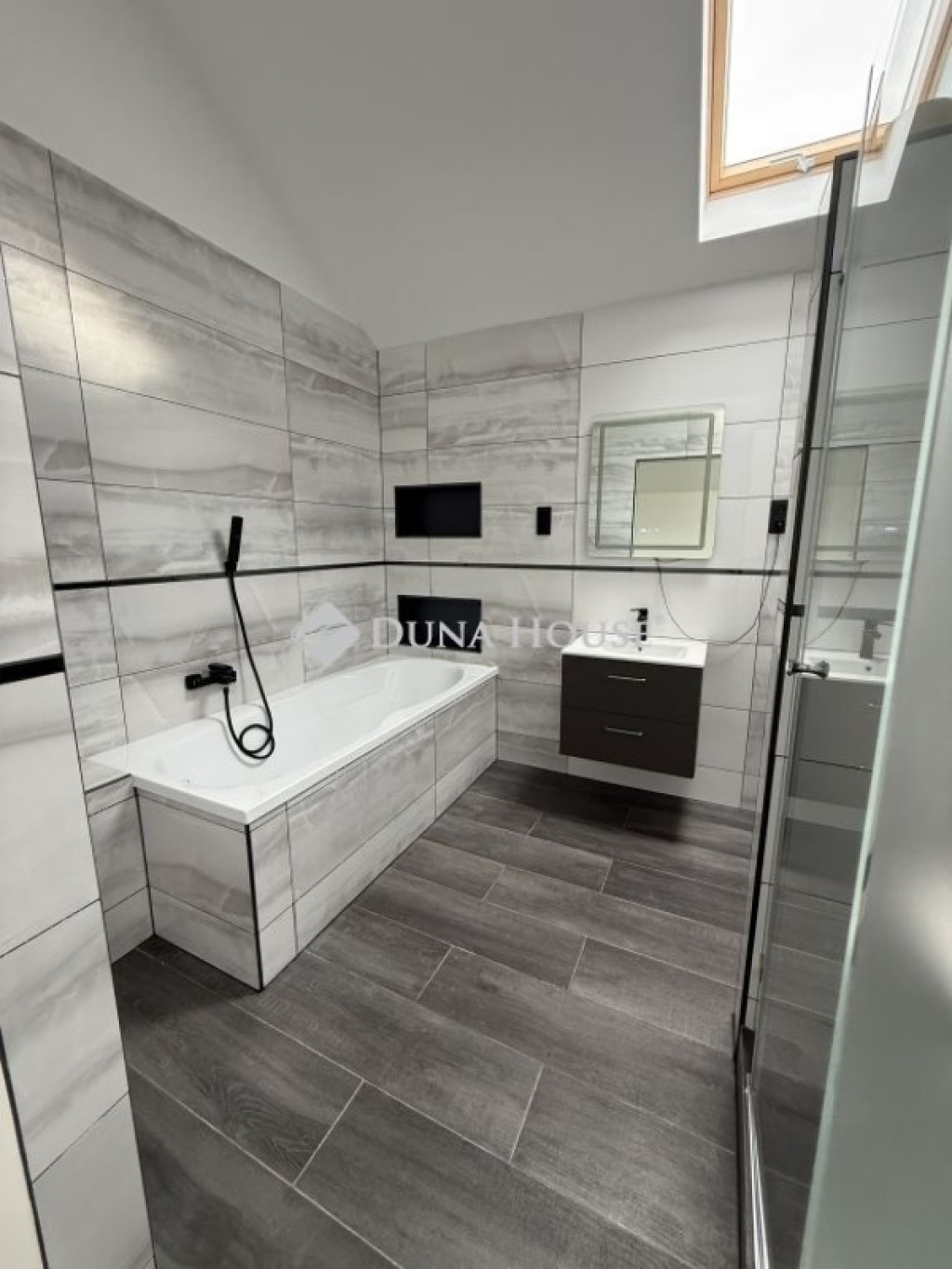 Igényes, nagy méretű fürdőszoba káddal és zuhanyzóval