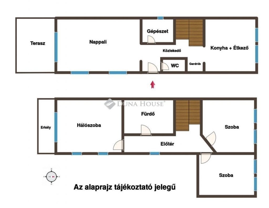 3 külön nyíló hálószoba az emeleten