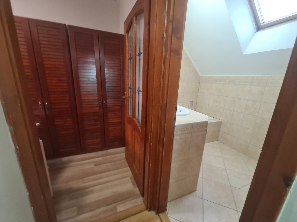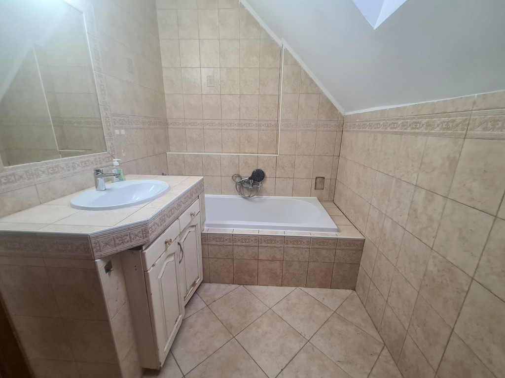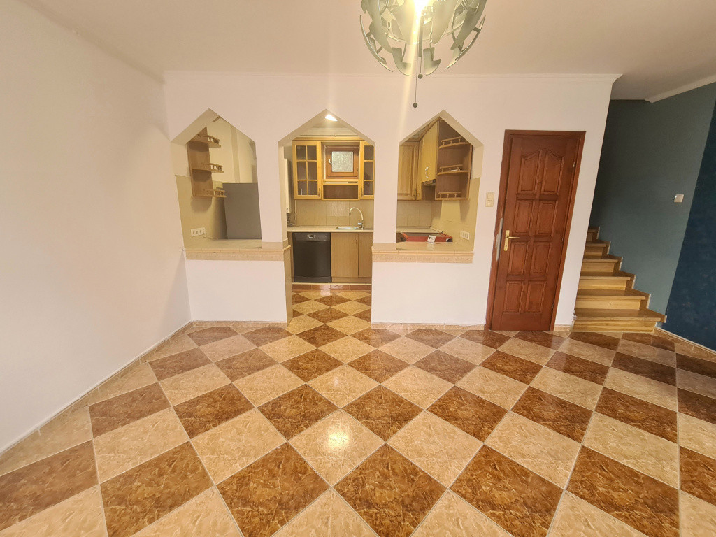 A lakás kiváló adottságú, a bejárat közvetlenül az amerikai konyhás nappali térbe nyílik. A lakásnak tökéletes a helykihasználása: a földszinten a gépesített amerikai konyhás nappali és egy mellékhelyiség van. A külön nyíló hálószobák és a fürdőszoba WC-vel a tetőtérben lett kialakítva. Az egyik szoba franciaerkélyes, a másikban szekrények segítik a tárolást. A fürdőszoba ablakos, kádas kialakítású, itt van elhelyezve a mosógép.