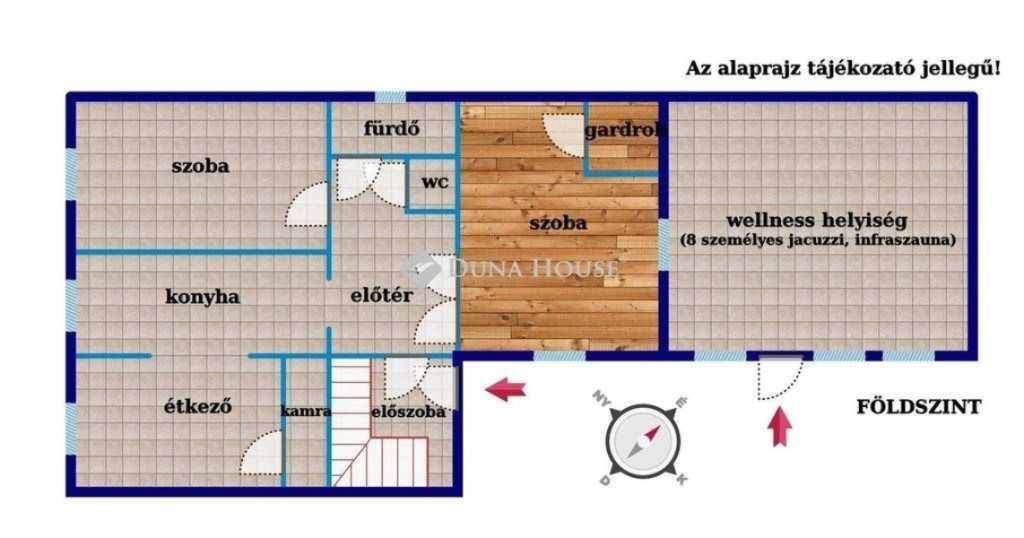 A házhoz tartozik egy külön bejáratú wellness helyiség, amelyben egy 8 személyes jacuzzi, illetve egy infraszauna található.