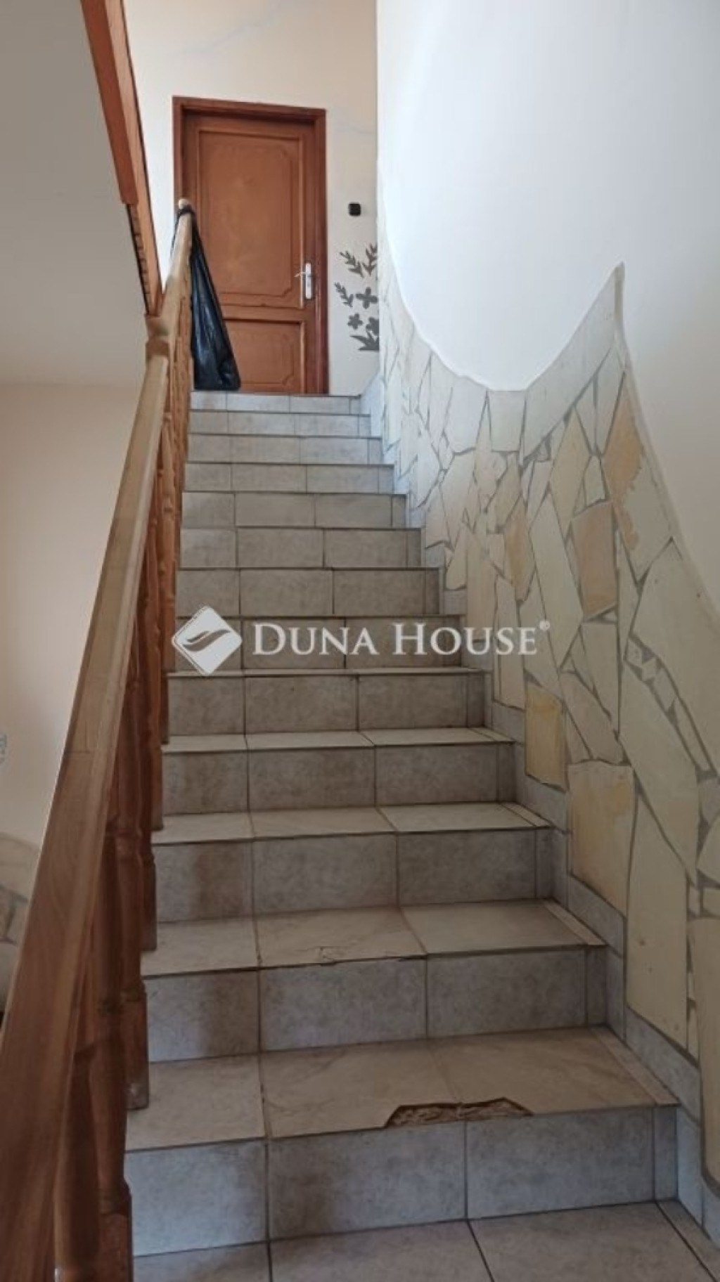 A felső szint 100 nm + 14 nm erkély teljesen külön bejárattal, önálló lakásnak kialakított nappali, 3 hálószoba, fürdő, WC, étkező és konyha. Található itt még egy 25 nm-es, jelenleg tárolónak használt szoba, valamint a 14 nm-es lépcsőház is beépíthető.