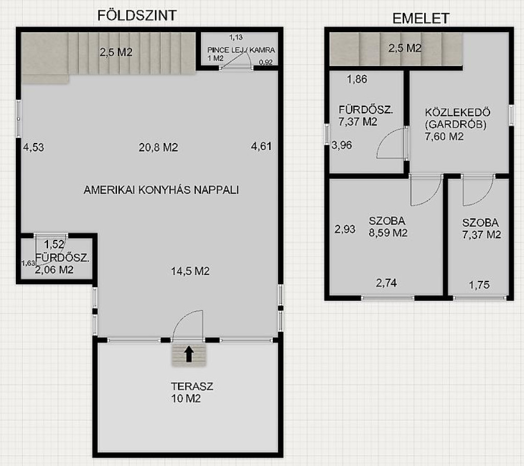 A földszinten amerikai konyhás nappali, fürdőszoba és egy tágas terasz található. Az emeleten 2 szoba, fürdőszoba és közlekedő (gardrób) áll rendelkezésre. A felújítás során új alapot, aljzatszigetelést, külső 10 cm-es hungarocell, és belső- 10 cm-es kőzetgyapot szigeteléssel látták el a házat.