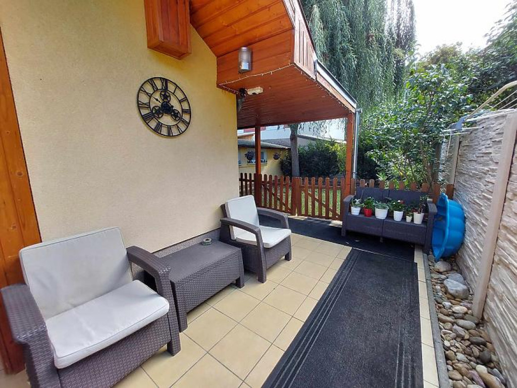 Tartozik a házhoz egy tágas terasz, illetve nyári konyha, a kertben öntözőberendezés van kialakítva.