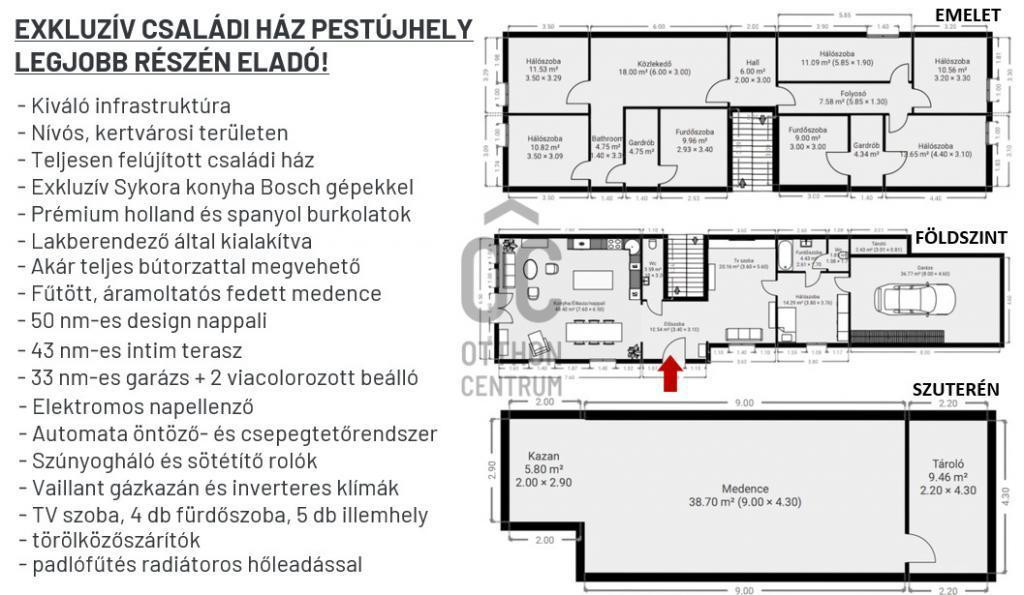 A 3 SZINTEN 3 nappalit, 6 szobát, 4 fürdőszobát és 5 illemhelyet kapott, TÁGAS és VILÁGOS TEREKET, NAGY ABLAKOKAT és rengeteg EXTRÁT.