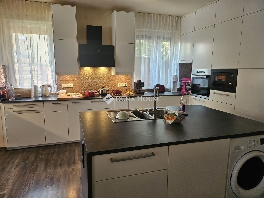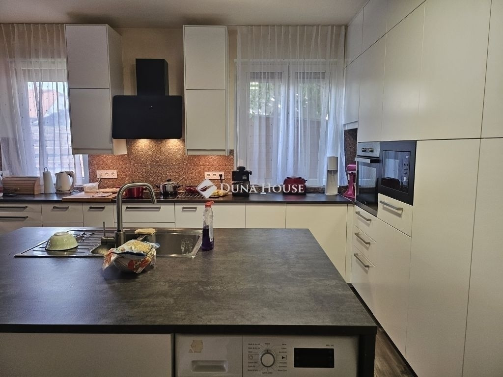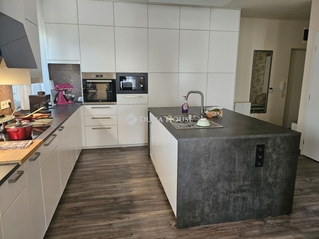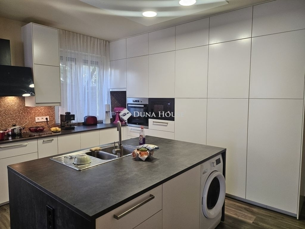 Főbb jellemzők: Amerikai konyhás nappali a földszinten, amelyből közvetlen kijárat nyílik a saját teraszra és kertbe. Minőségi bútorokkal, gépekkel felszerelt konyha konyhaszigettel, mely nagyon esztétikus és praktikus.Faltól falig a beépített bútor ami jó kis pakolást biztosít.