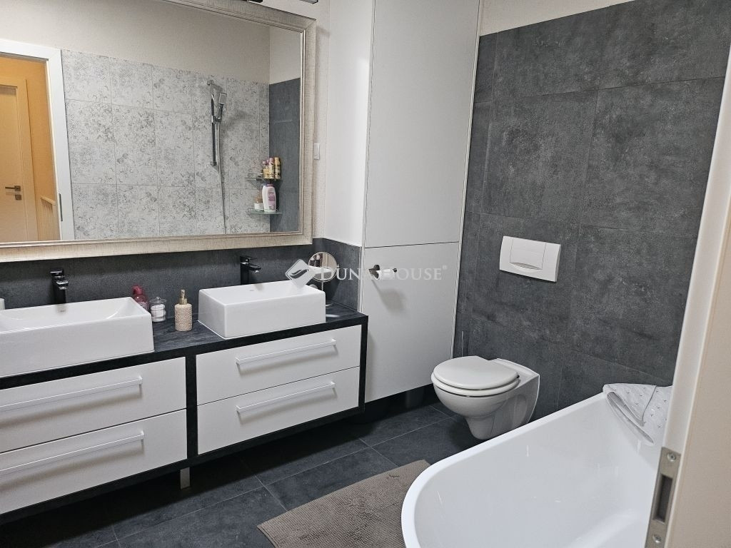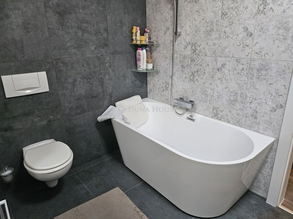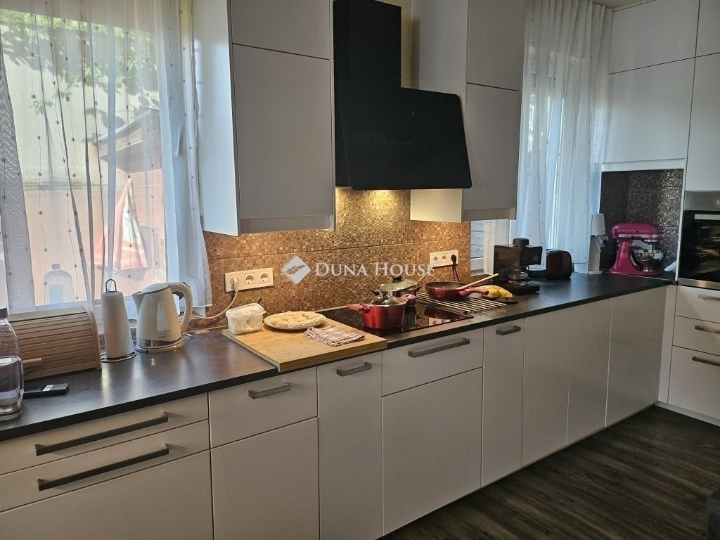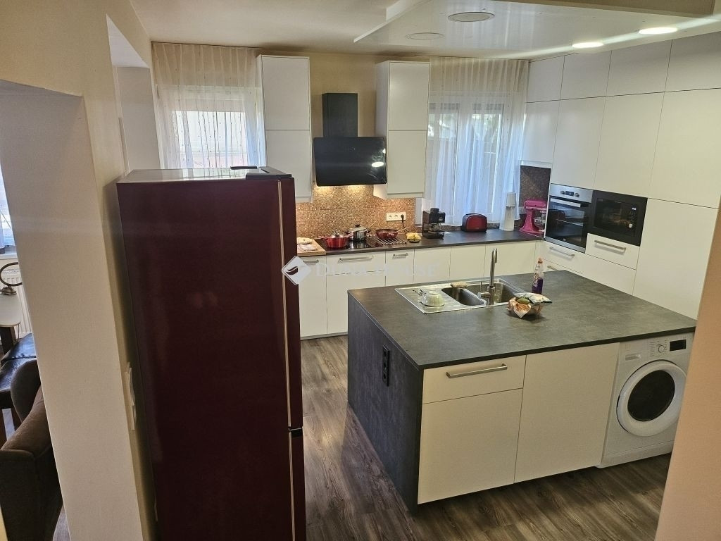 Főbb jellemzők: Amerikai konyhás nappali a földszinten, amelyből közvetlen kijárat nyílik a saját teraszra és kertbe. Minőségi bútorokkal, gépekkel felszerelt konyha konyhaszigettel, mely nagyon esztétikus és praktikus.Faltól falig a beépített bútor ami jó kis pakolást biztosít.