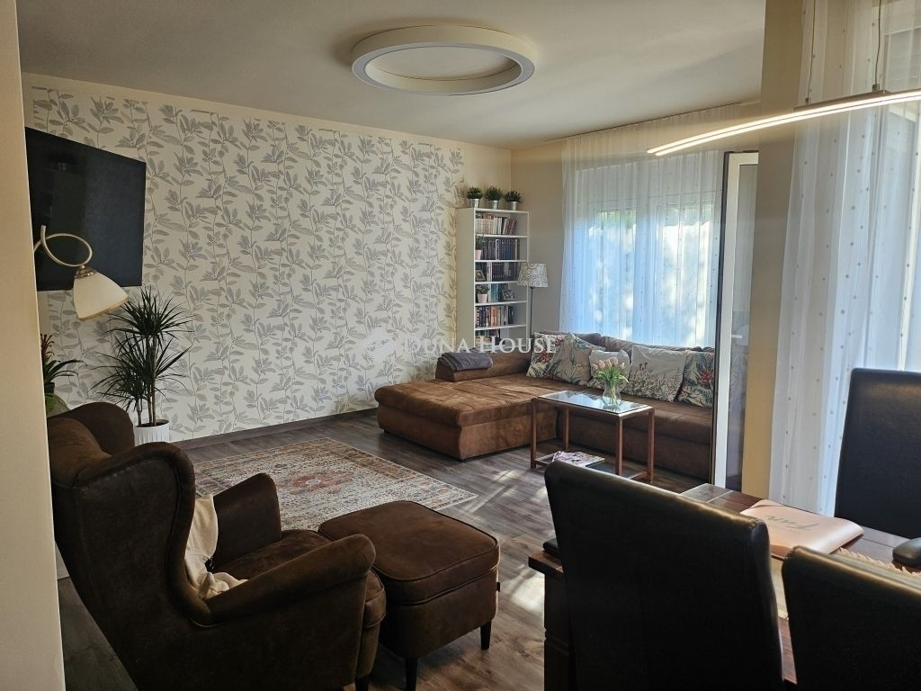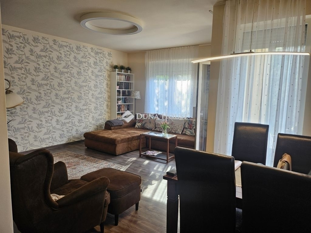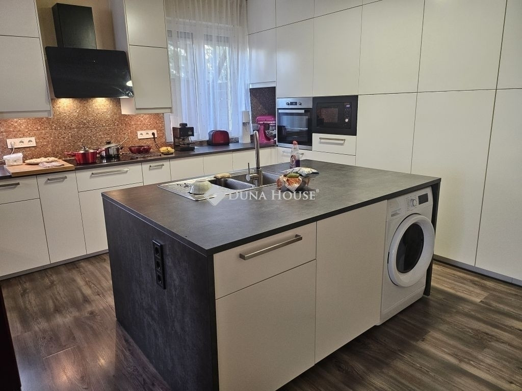 Főbb jellemzők: Amerikai konyhás nappali a földszinten, amelyből közvetlen kijárat nyílik a saját teraszra és kertbe. Minőségi bútorokkal, gépekkel felszerelt konyha konyhaszigettel, mely nagyon esztétikus és praktikus.Faltól falig a beépített bútor ami jó kis pakolást biztosít.