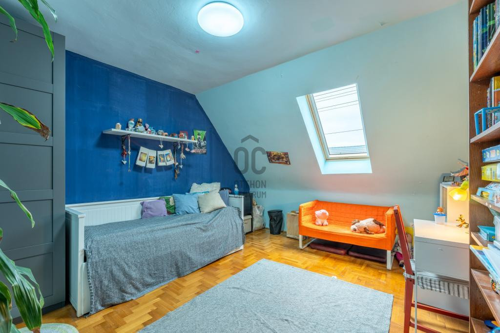 A tetőtér is közel 60m2, ahol 3 szoba és egy fürdőszoba került kialakításra. 2 szobából léphetünk ki az erkélyre.