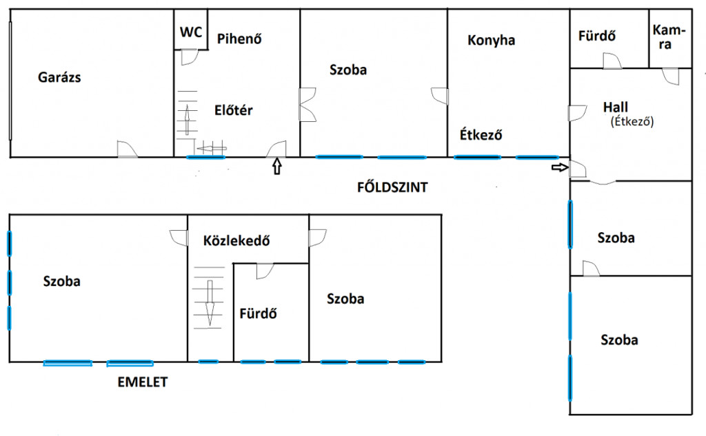 • Földszinti garázs motoros kapuval, utcáról közvetlen behajtással