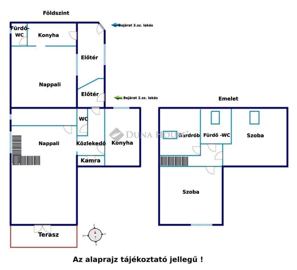 2 külön bejáratú, de összenyitható lakás egy 3 lakásos házban