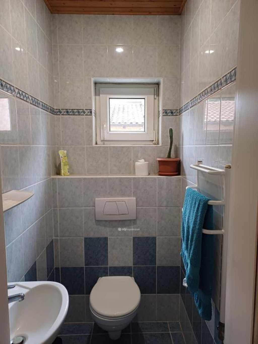 Az 1992-ben épült körbejárható ingatlan egy 532 négyzetméteres telken helyezkedik el, összesen 235 négyzetméteres lakótérrel. Elosztása rendkívül praktikus, a földszint a mindennapok kiszolgálását, a vendégek fogadását célozza meg. Itt található a nappali, a konyha, az étkező, egy zuhanyzós fürdőszoba, valamint egy vendég mosdó. A tetőtér egy privátabb teret biztosít, itt 4 darab hálószoba, egy gardrób és egy nagy fürdőkádas fürdőszoba helyezkedik el. A szuterén szint kialakításában rengeteg lehetőség rejlik. Itt 4 külön helyiség található, jelenleg egy mosókonyha, egy tároló, egy edzőterem és egy nagyobb terület található. Kialakítható itt akár egy teljesen különálló lakrész, egy műhely, egy szépségszalon, vagy akár egy saját szórakoztató központ is. Előnye, hogy itt is minden helyiség ablakos, a víz be van vezetve, fűtés van. A ház jó állapotú, legutóbb festés, és a kazán cseréje történt meg. A háznak van egy fedett terasza is. Az udvaron található egy garázs, valamint két kocsi számára fedett beálló. Van fúrt kút, kukatároló helyiség, dísznövények, a közlekedő utak térkövezettek. A ház külső homlokzata is jó állapotban van. Az épület kaputelefonnal és riasztóval el van látva. A környék kertvárosias, csendes.