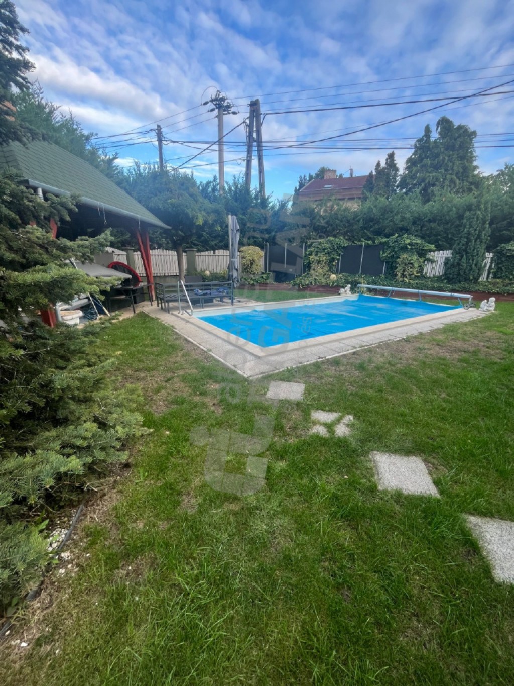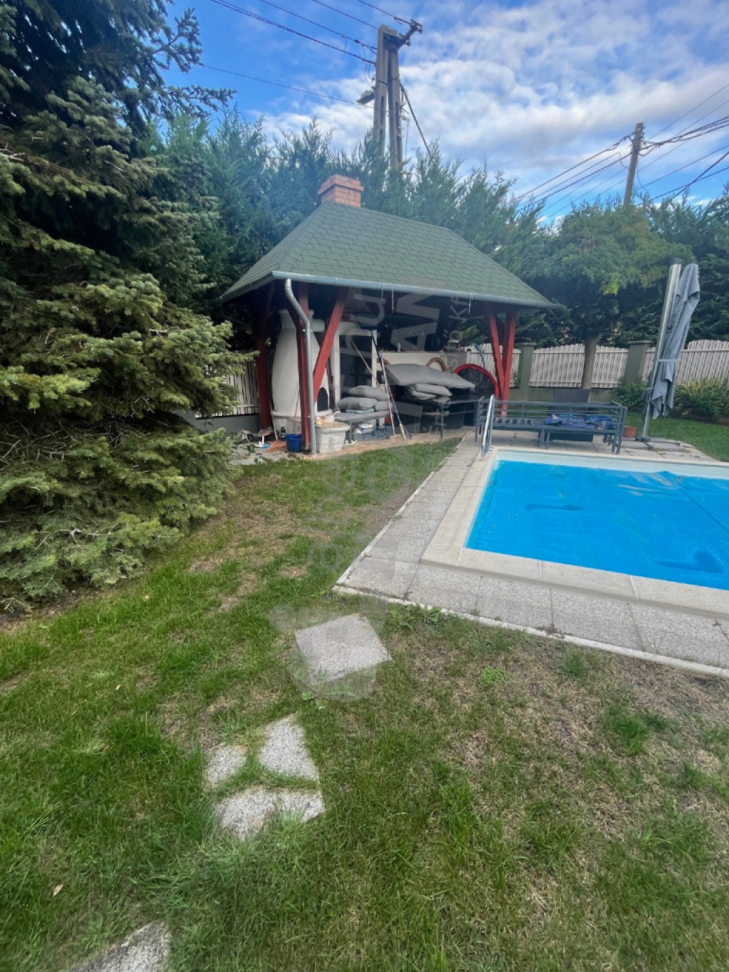 Kertész által gondozott díszkert fűtött medencével +kerti filagória grill terasz, kemence ,stb.