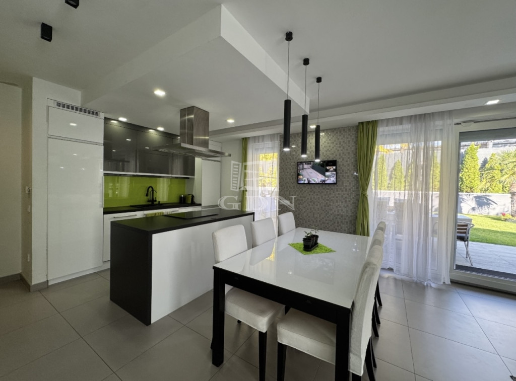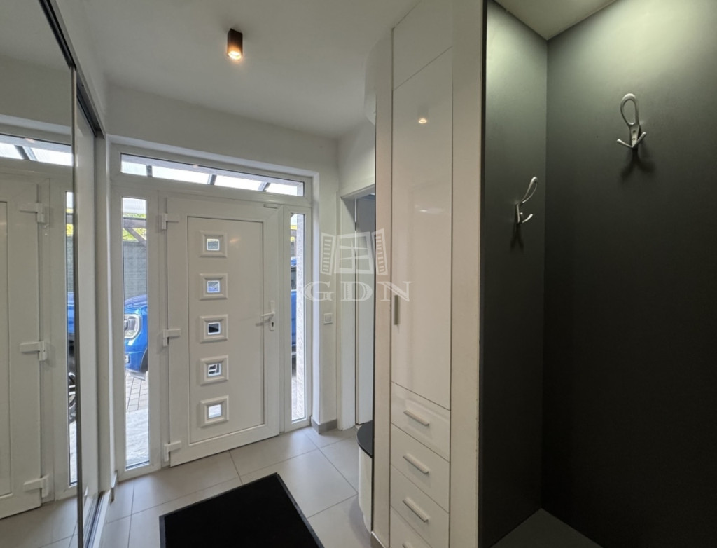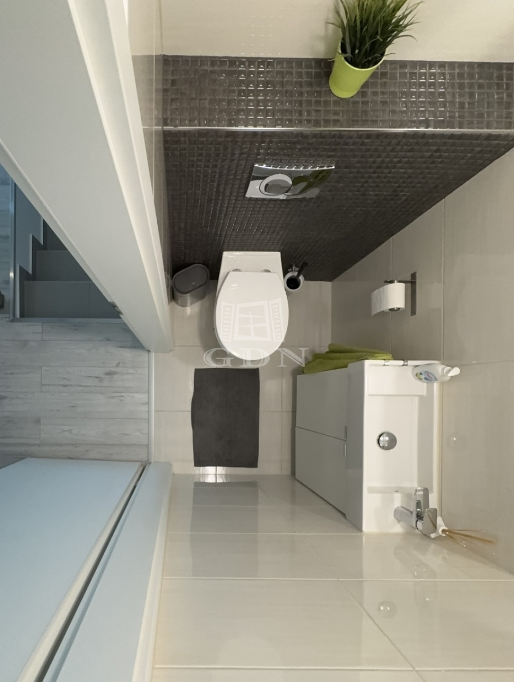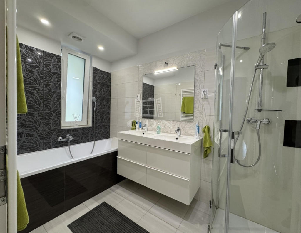 Sashalmon, a Kicsi utcában eladó egy 214 m²-es, prémium kivitelezésű, kétszintes ikerházfél két külön lakóegységgel – akár egybenyitható kialakítással.