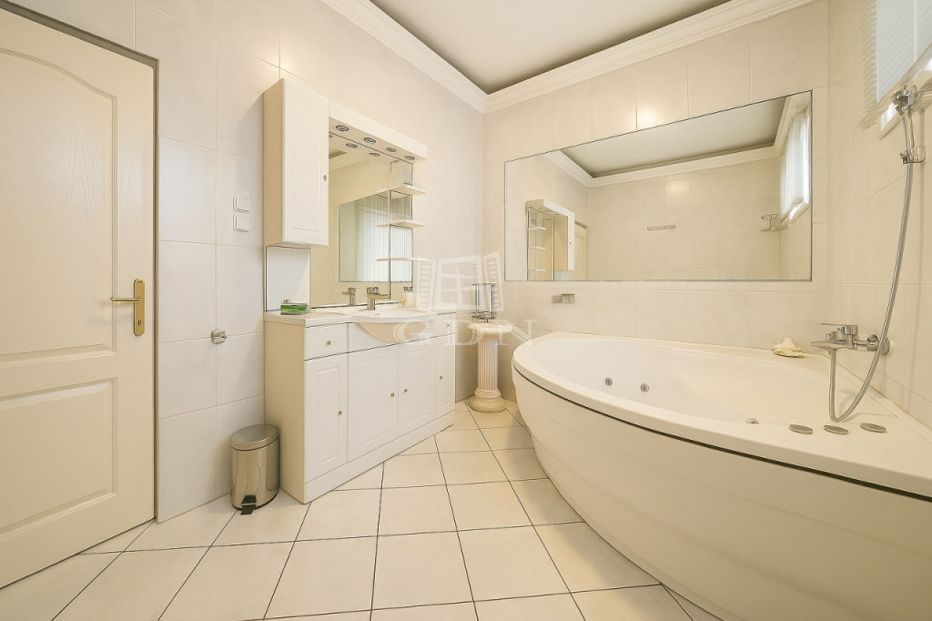 A szuterén szint külön bejárattal akár rendelőnek, irodának, stúdiónak vagy egyéb vállalkozási tevékenységre is ideális lehet.