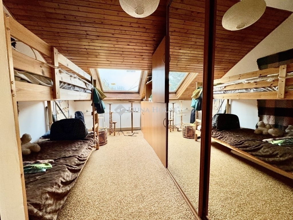 Eladó egy kiváló adottságokkal rendelkező, tágas és jól élhető ikerház-fél Árpádföld egyik legkedveltebb, kertvárosi utcájában.A 462 nm-es telken álló ingatlan csendes, rendezett környezetben található, ahol a családi házas övezet nyugalma és a környék kiváló infrastruktúrája egyszerre biztosítja a kényelmes mindennapokat.Tágas lakóterek, praktikus kialakításAz ingatlan három szinten összesen 195 nm-t kínál, melyből 130 nm a lakótér, további 65 nm pedig a szuterén, belső lépcsőn megközelítve. A ház elrendezése kifejezetten ideális családok számára, hiszen a nappalin kívül négy különálló szoba biztosítja a kényelmes privát tereket. Földszint:- Tágas, világos nappali közvetlen terasz- és kertkapcsolattal- Külön konyha étkezővel- Fürdőszoba wc-vel- Kamra- Kis dolgozószoba vagy hálóEmelet:- Három külön nyíló szoba (16 + 16 + 14 m2)- Zuhanyzós fürdőszoba wc-vel- A kisebb szobából nyíló, körülbelül 3 méter hosszú gardróbSzuterén:- A 65 nm-es szuterén külön értéket képvisel:- Két autó egymás mögötti parkolására alkalmas garázs- Két tágas tárolóhelyiség / műhely- Külön kazánházA szintek között belső lépcső biztosítja a közvetlen átjárástEz a kialakítás nemcsak kényelmes, hanem rendkívül praktikus is, akár nagyobb családi logisztika, akár hobbi tevékenység szempontjából.Gondozott kert, harmonikus környezetAz ingatlan kertje rendezett, a hátsó részen tágas zöld területtel és épített sütögetővel. Az utcafronton további külön kapun keresztül közelíthető fedett autóbeálló szolgál extra parkolási lehetőségként. A ház előtt is kényelmesen tud parkolni 2 autó.Kiemelkedő lokációÁrpádföld a XVI. kerület egyik legbarátságosabb, családias környéke. A környéken található több buszmegálló, továbbá a közelben óvoda, iskola, játszótér, étterem, bevásárlási és szabadidős lehetőségek is elérhetők. A környezet rendezettsége, a zöldövezeti hangulat és a remek megközelíthetőség mind hozzájárulnak ahhoz, hogy az ingatlan valódi értéket képviseljen.Felújítások és korszerűsítések- Az ingatlan állapota rendezett, a kivitelezője saját magának építette- A kazán megbízható, nagy teljesítményű Vaillant kazán hőtárolóval- Modern burkolatok a konyhában, előszobában és teraszokon- A nappali parkettája felújítva- Új fa thermo nyílászárók a nappaliban és a teraszajtón- Új biztonsági bejárati ajtó- Megújult kerítés elektromos kapuvalAz ingatlan kiváló választás mindenki számára, aki tartós értéket, tágas tereket és nyugodt, mégis jól ellátott környéket keres Árpádföldön.Amennyiben további kérdése van vagy szeretné megtekinteni az ingatlant, keressen bizalommal!